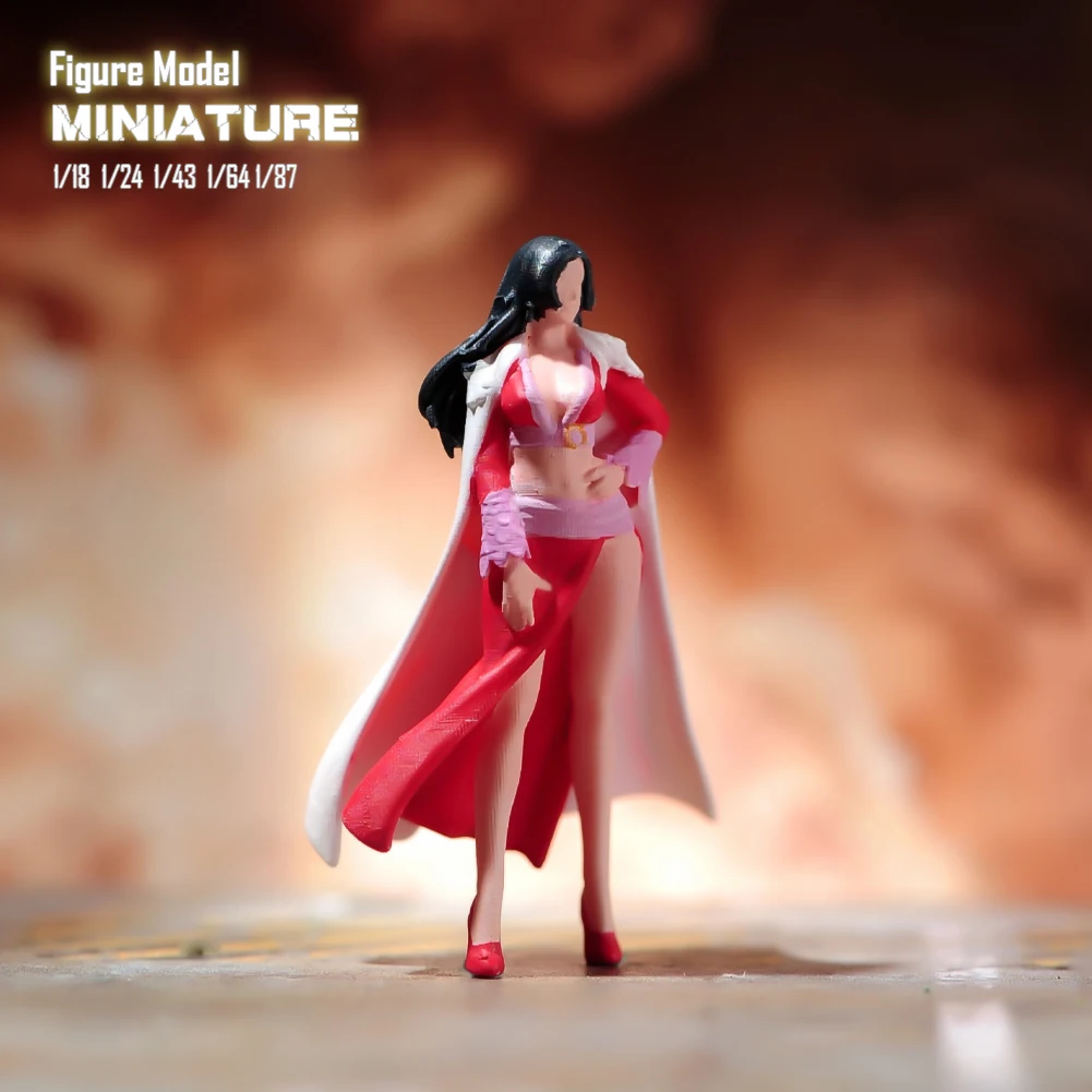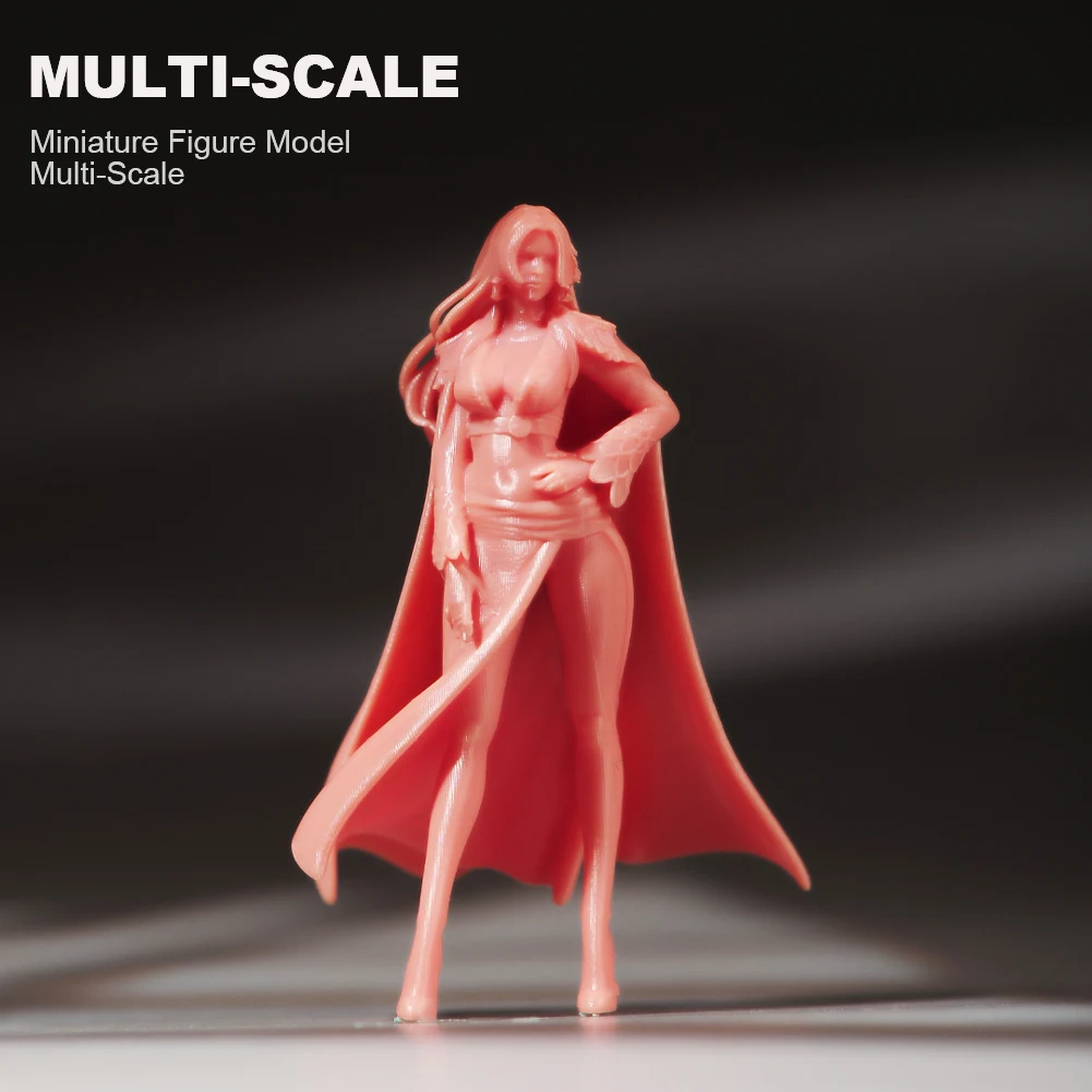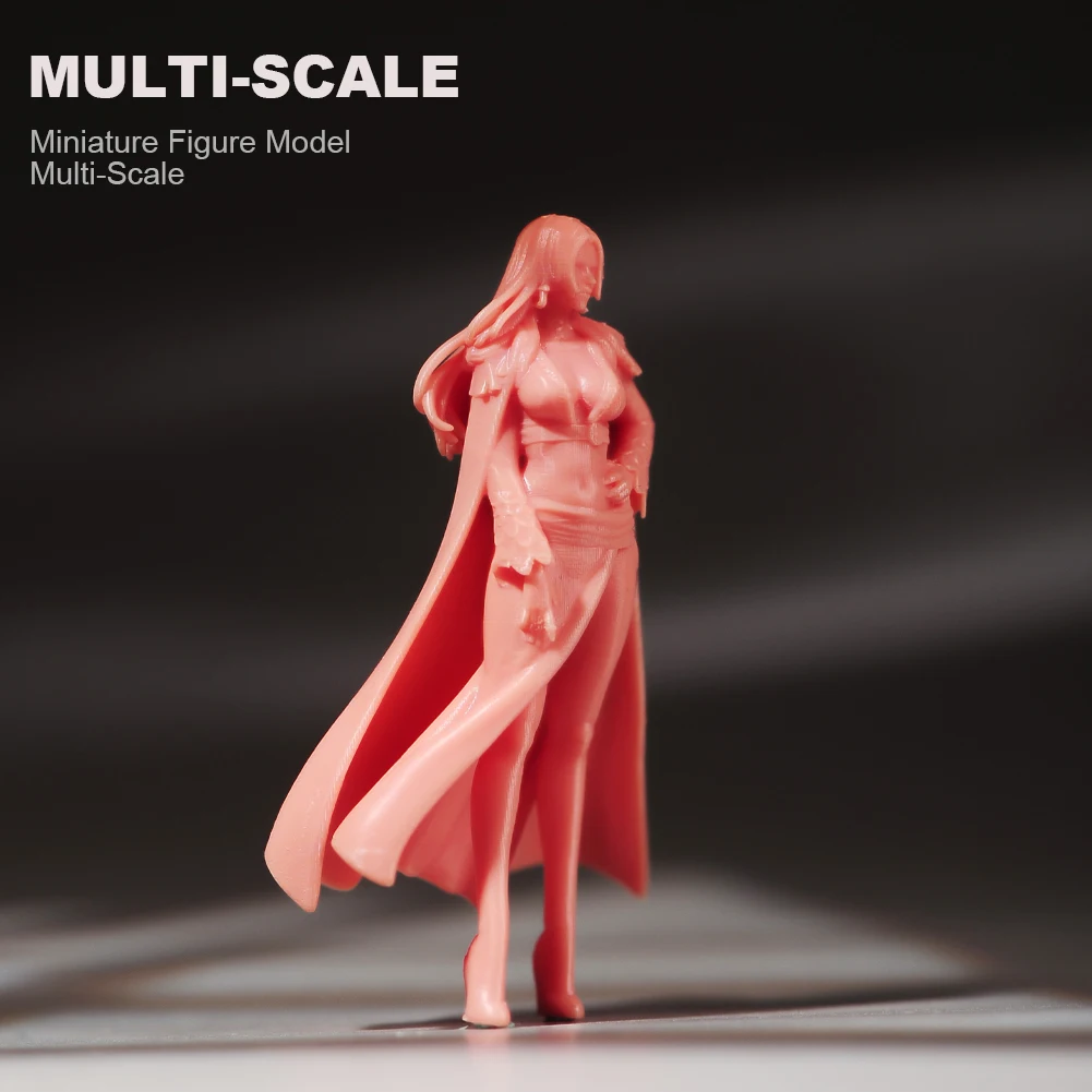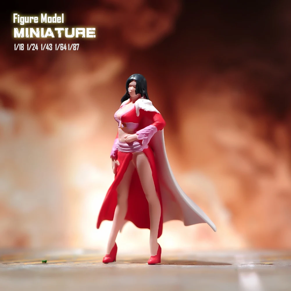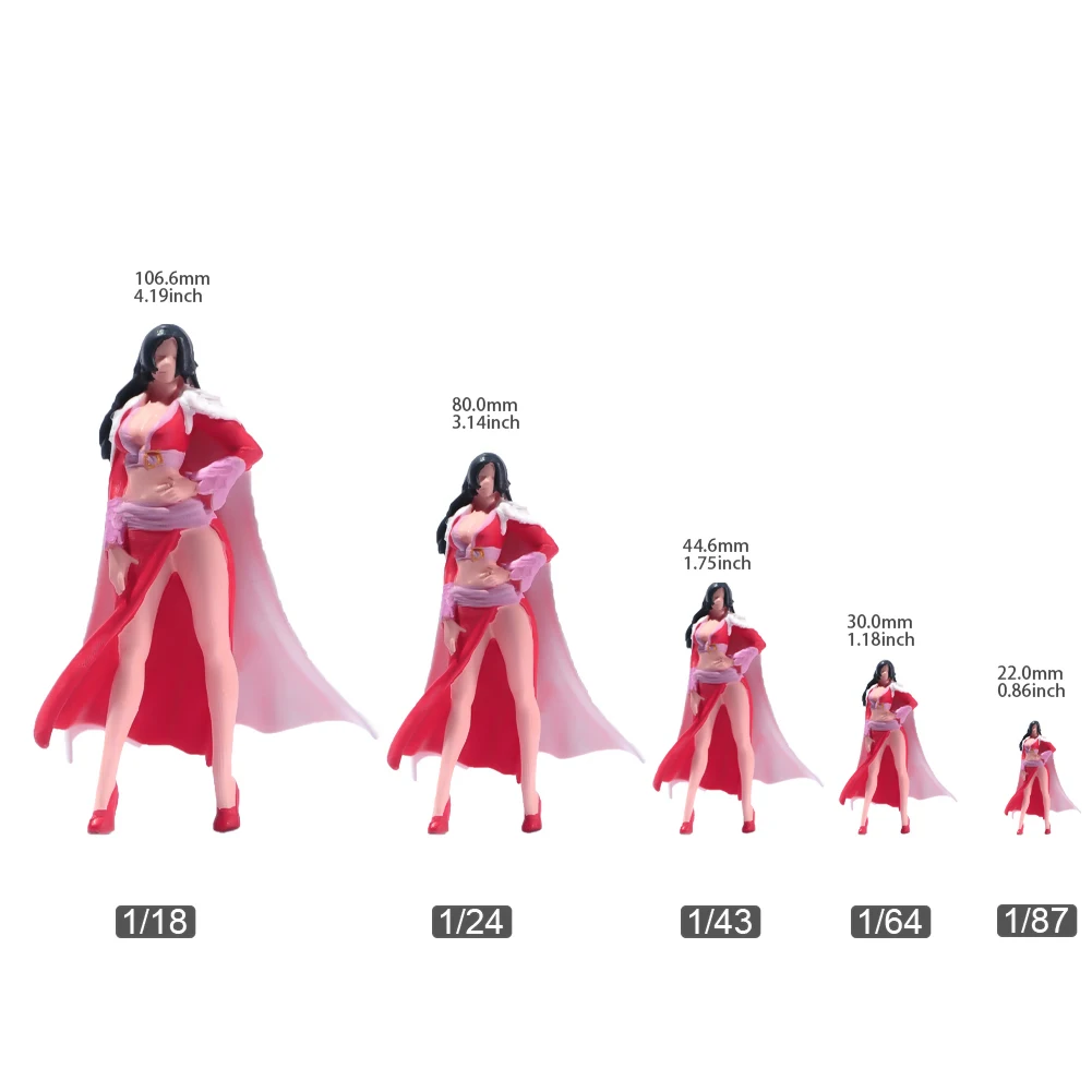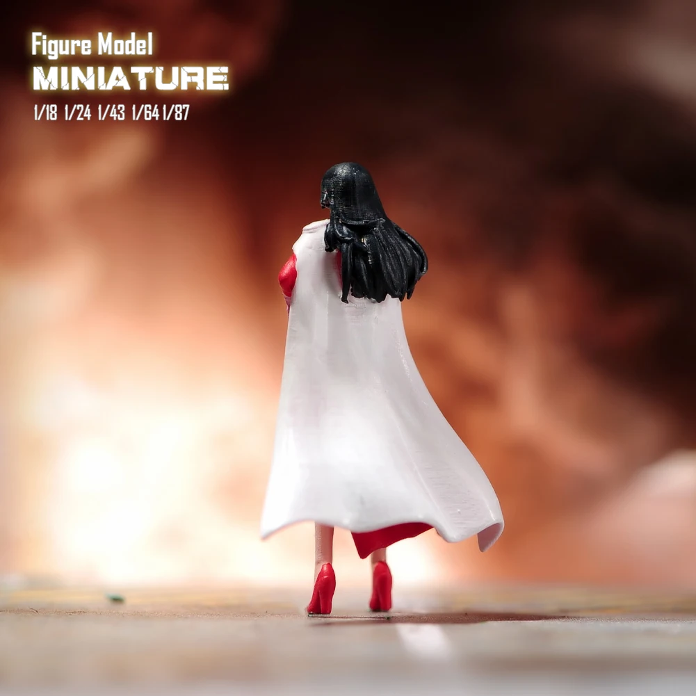 This intricate miniature model figure of a female character is crafted from high-quality resin, making it perfect for collection and decoration. With vibrant red and white hues, the figure showcases a midriff-revealing outfit, a flowing cape with elegant white trim, and high-cut skirt that emphasizes her legs. Standing at scales of 1/18, 1/24, 1/43, 1/64, and 1/87, it is meticulously hand-made and designed for display with delicate features and a confident expression. Note that this model is not waterproof and is intended solely for adult collectors and enthusiasts, making it an excellent addition to your collection.