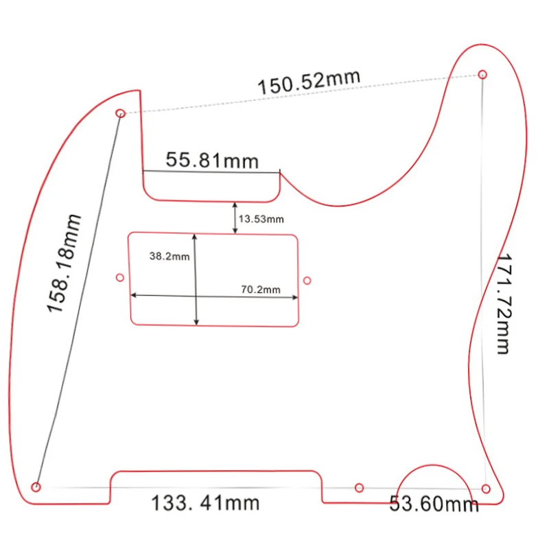 Enhance your Fender Telecaster with this high-quality, 217mm x 189mm x 2.5mm pickguard, crafted from durable PVC and composite materials. Designed specifically for models with five screw holes and Humbucker pickups, it offers anti-scratch protection and features a glossy, protective film for a pristine look. Available in an array of striking colors and patterns, including black, pearl, tortoise, and vibrant multicolors, each pickguard showcases sleek, curved contours with clean edges for easy installation. Weighing between 82g and 88g, this pickguard includes five mounting screws and ensures both style and protection for your guitar’s surface, making it a perfect upgrade for personalized aesthetics.