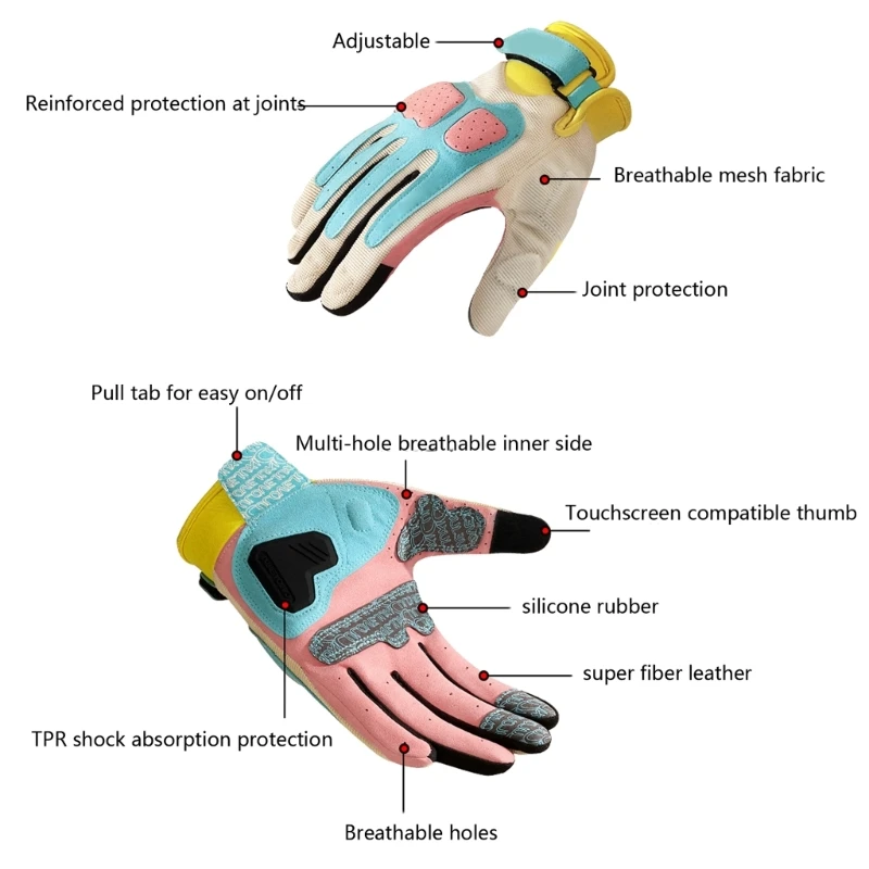 Step into your next adventure feeling confident and protected with these full finger motorcycle gloves. Crafted from durable polyamide fiber, they offer enhanced grip, abrasion resistance, and a snug fit that maintains its shape after multiple washes. The vibrant colors like Coffee Brown, Mint Powder, Black Starry Sky, Twilight Purple, and Carmine make them not only functional but also a stylish addition to your outdoor gear. Designed with a retro aesthetic, these gloves combine practicality with an energetic, sporty look, perfect for cycling, hiking, camping, climbing, hunting, or shooting. Experience the perfect balance of durability, comfort, and style while staying connected through the touchscreen-compatible fingertips.