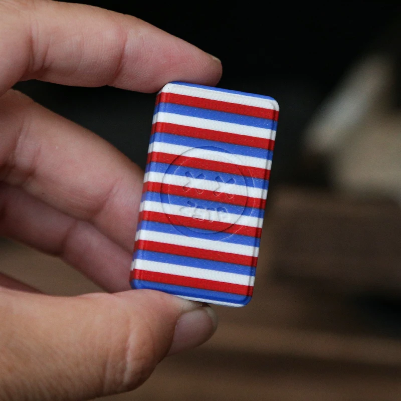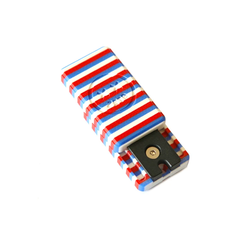Experience stress relief and tactile satisfaction with this compact, rectangular fidget slider toy, featuring a vibrant red, white, and blue striped pattern across its smooth plastic surface. Designed for adults, it includes a prominent circular haptic coin with matching stripes and tactile markings, along with a black sliding panel secured by a metallic screw or pin for interactive fun. Measuring approximately [insert dimensions], this CE-certified decompression EDC device is ideal for ages 14 and up. Its playful, sleek aesthetic makes it the perfect accessory for focus, relaxation, or as a thoughtful gift. Durable and simple, it seamlessly combines vivid color with engaging functionality.