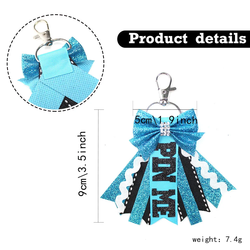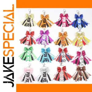 Experience a lively touch of fun and style with this trendy and colorful keychain. Featuring a large glittery bow in shimmering shades, it instantly captures attention with its vibrant hues—ranging from gold and silver to bright orange, pink, purple, red, green, and more. Below the bow, layered ribbons showcase diverse motifs like sports balls, musical notes, floral elements, and playful designs, adding texture and personality. Its round zinc alloy shape boasts a polished gold or rhodium finish, making it a versatile accessory for bags, phones, or keys. Whether for yourself or as a delightful gift, this keychain exudes youthful energy and stylish flair perfect for any occasion. The adjustable design makes it suitable for a wide variety of accessories.