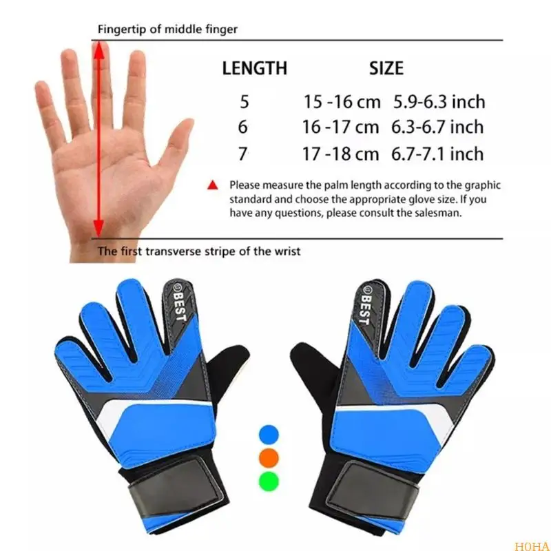 Experience the perfect combination of style, comfort, and performance with these striking goalkeeper gloves. Designed for soccer enthusiasts of all ages, they feature bold color accents of blue, green, and orange that instantly catch the eye. The streamlined shape conforms snugly to your hand, providing a secure grip and maximum agility. Crafted from durable PU and latex, these gloves ensure longevity and excellent grip during intense matches. Their breathable construction keeps your hands cool and dry, even during extended play sessions. Whether you're training or competing, these lightweight gloves are easy to wear and remove, making them an ideal addition to your soccer gear. Feel confident as you make those game-winning saves with these reliable goalkeeper gloves.
