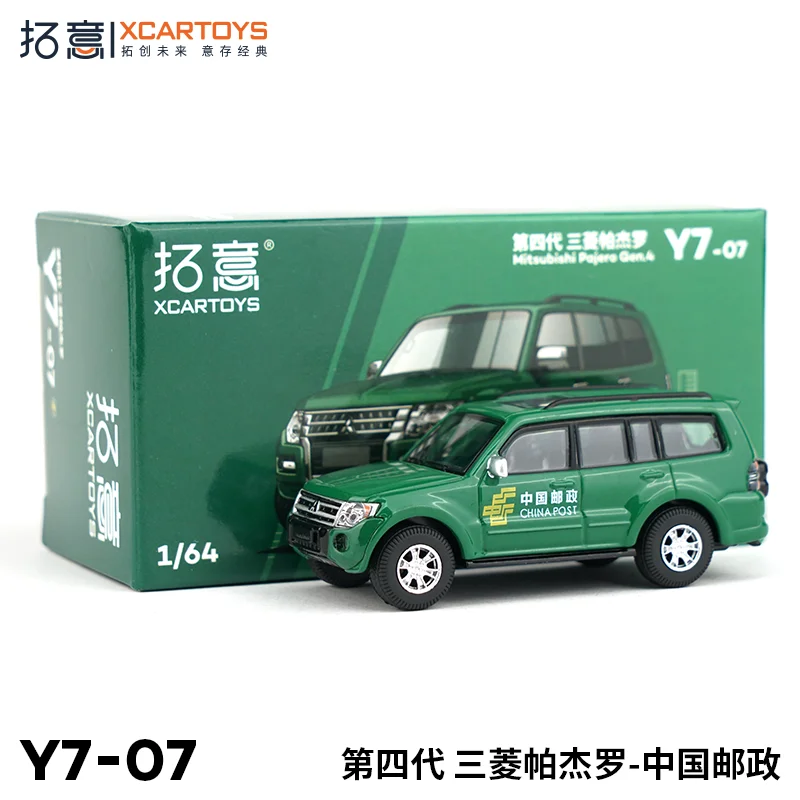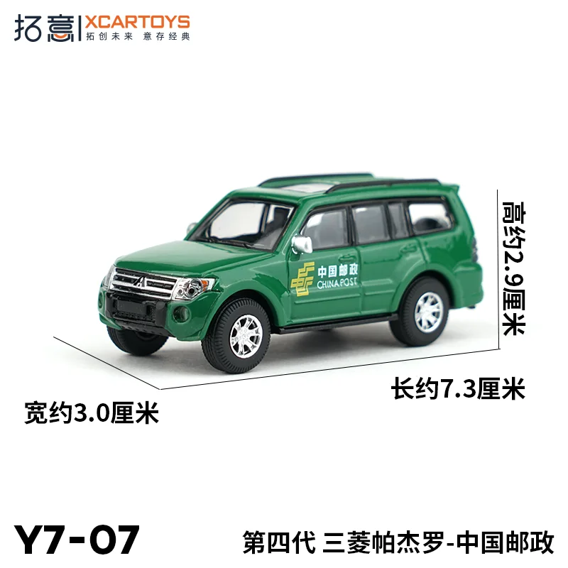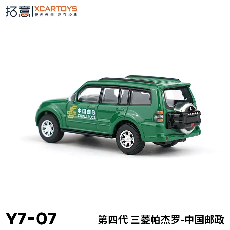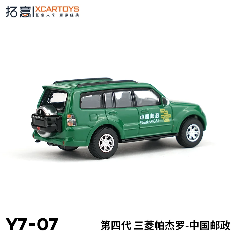 Step into the world of detailed miniature collectibles with this vibrant green 1/64 Mitsubishi Pajero model. Crafted with precision, this alloy diecast toy captures the essence of the 4th generation SUV, boasting a glossy Y7-07 finish that perfectly mimics the sleek exterior of the actual vehicle. Its realistic proportions feature a boxy shape, detailed grille, and clear headlights, making it an eye-catching desktop ornament. The side profile showcases molded handles, tinted window outlines, and metallic silver side mirrors, while the white multi-spoke rims add a contrasting touch. The tire tread and small rear details further enhance its authentic appearance, encouraging you to imagine owning a miniature version of this iconic SUV.