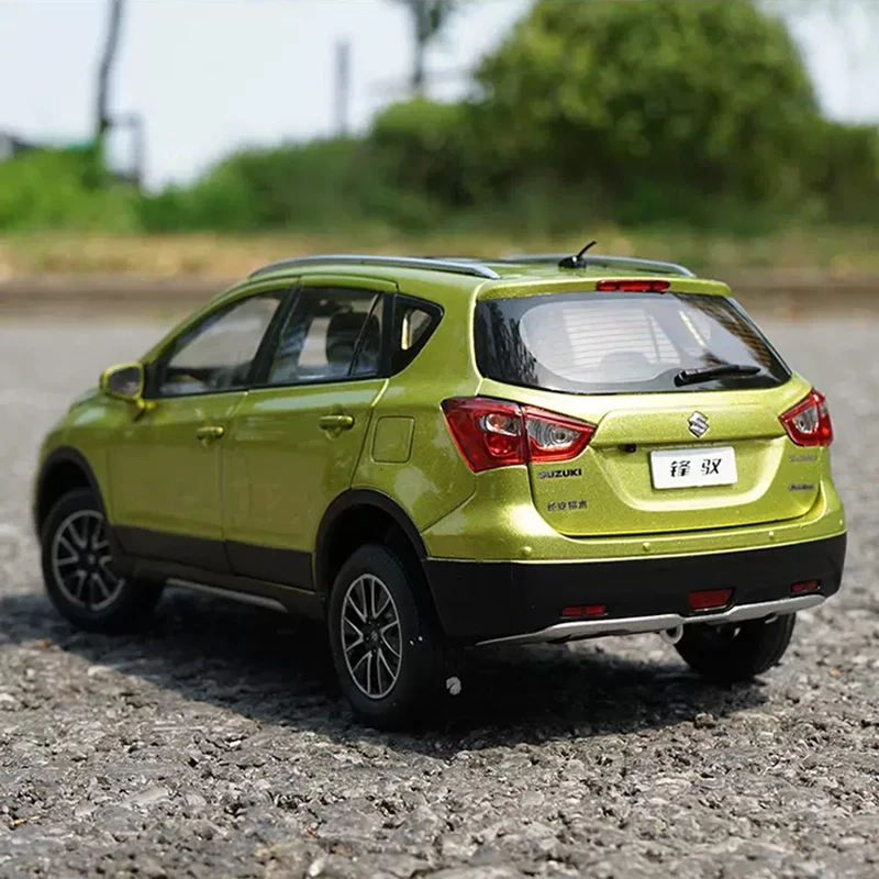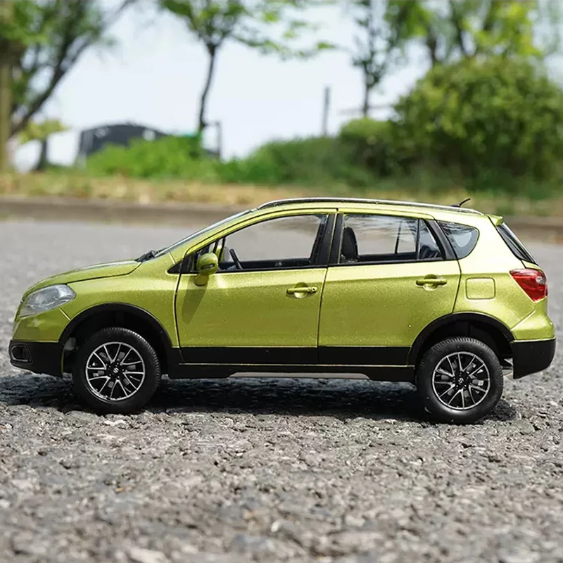 Experience the excitement of owning a highly detailed 1:18 scale Suzuki S-CROSS alloy car model, perfect for collectors and enthusiasts who appreciate craftsmanship. Standing approximately 25 centimeters long, 10 centimeters wide, and 9 centimeters high, this model boasts a sleek, metallic green finish with a smooth glossy surface that captures the modern aesthetic of the original vehicle. The carefully crafted exterior features precise silver accents on the front grille and multi-spoke rims, complemented by black trim details along the lower sides and wheel arches. The transparent plastic windows reveal a detailed interior, and functional doors, hood, and trunk add realism. Whether displayed as a decorative piece or cherished collection, this model will enhance any space and evoke a sense of automotive passion.