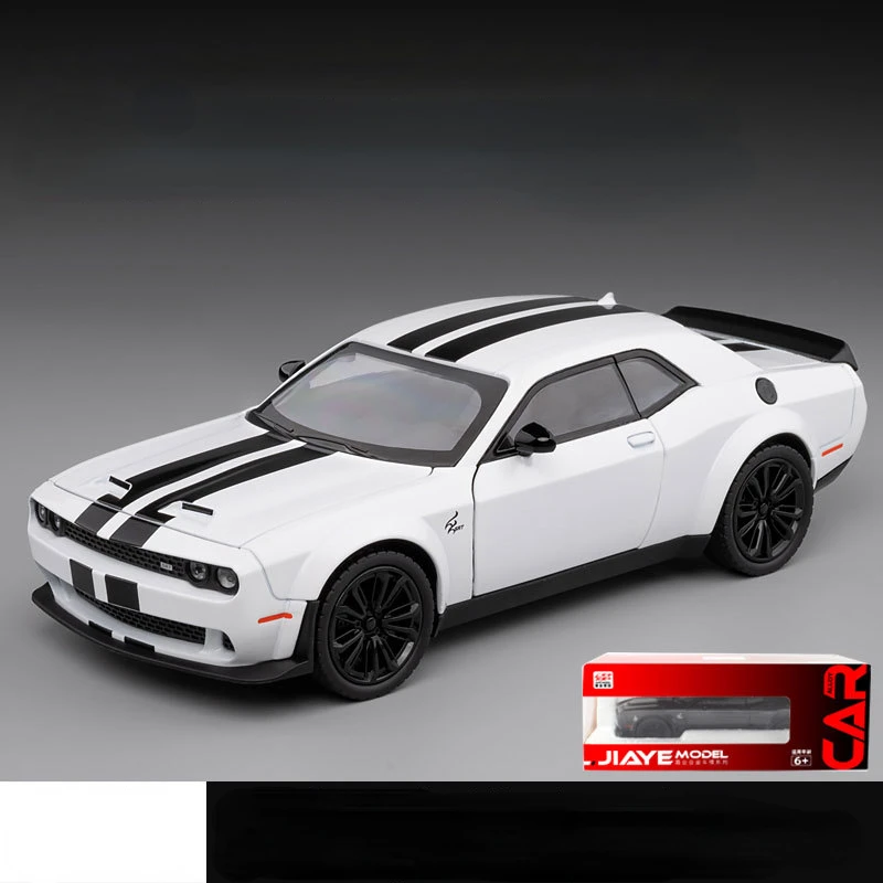 Experience the thrill of owning a detailed 1:24 scale diecast replica of the Dodge Challenger SRT Hellcat Demon. Crafted from durable metal, this model features pull-back motion, vivid LED lights, and authentic sounds that bring the muscle car to life. With its vibrant lime green, sleek black, or crisp white finish, and available in multiple options including boxed or unboxed, it’s perfect for collectors and enthusiasts age 14 and older. The precise design includes realistic panel lines, black side mirrors, multi-spoke alloy wheels, and subtle exterior details that enhance its muscular, high-performance aesthetic. This model is a must-have for showcasing or display.
