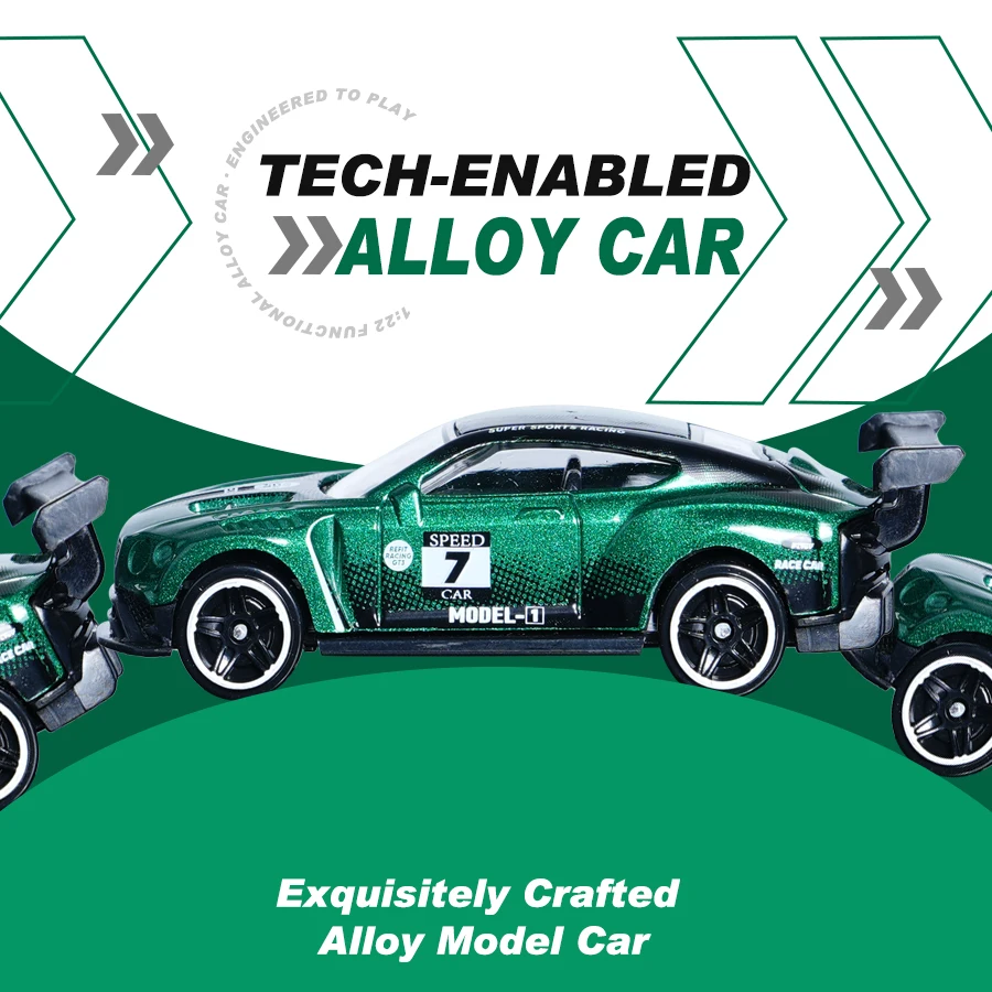 - Features a vibrant, metallic green paint with a glossy finish, eye-catching from every angle, complemented by racing decals and realistic LED-inspired details for maximum visual impact.
