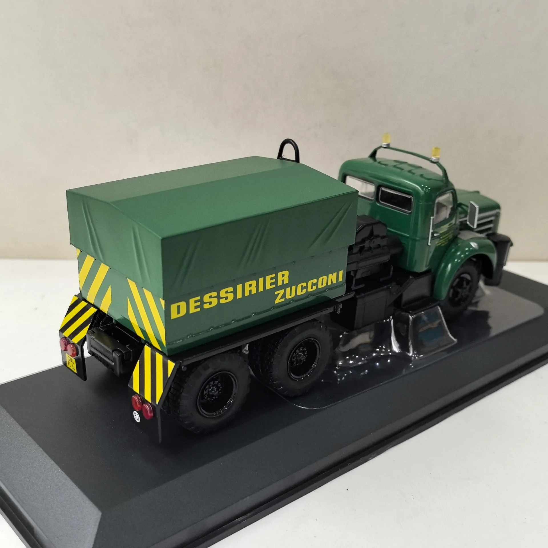 Imagine adding a striking piece to your collection with this meticulously crafted 1:43 scale diecast model of the Berliet TB0 mining vehicle. Its glossy, vibrant green finish captures attention and brings a lively, industrial spirit to any display. The front features a classic truck silhouette with a detailed silver grille and horizontal slats, complemented by small yellow warning lights atop the cab. The clear plastic windows reveal intricate interior details, while side mirrors and tiny door handles heighten realism. Behind the cab, the enclosed cargo area exhibits subtle surface wrinkling and detailed lettering, emphasizing durability. Black tires with silver rims and black fenders add the final touch, balancing bold color with refined craftsmanship, perfect for enthusiasts and collectors alike.