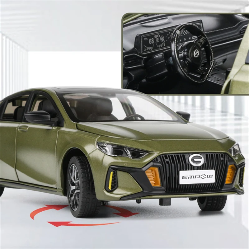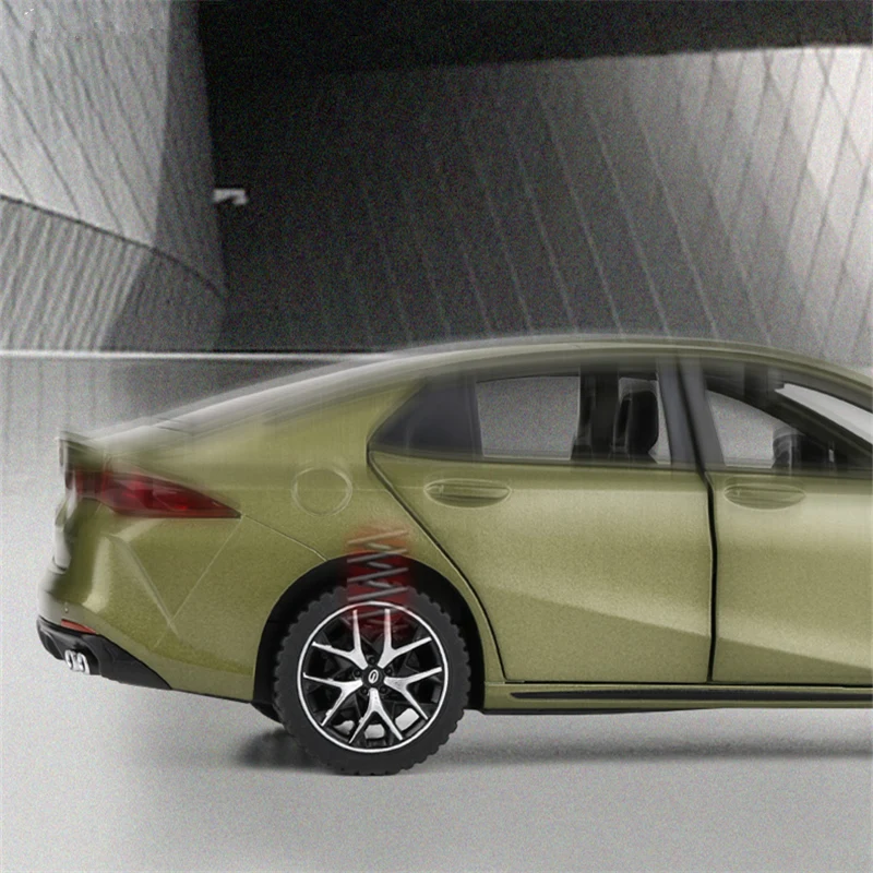 Experience the thrill of owning this stunning 1:24 scale EMPOW 55 Coupe alloy car model. Crafted with diecast metal and featuring plastic components, this detailed replica exudes a sporty and modern aesthetic. Its vibrant metallic green finish captures attention instantly, while aerodynamic lines and sharp LED-style headlights enhance its dynamic look. The black grille and contrasting black accents on the mirrors and lower bumper add an aggressive, stylish touch. Equipped with functional sound and light features, it offers a captivating display option for collectors and enthusiasts alike. Perfect for display or active play, this model is built to impress with its realistic proportions and detailed craftsmanship, making it an excellent addition to any collection or shelf.
