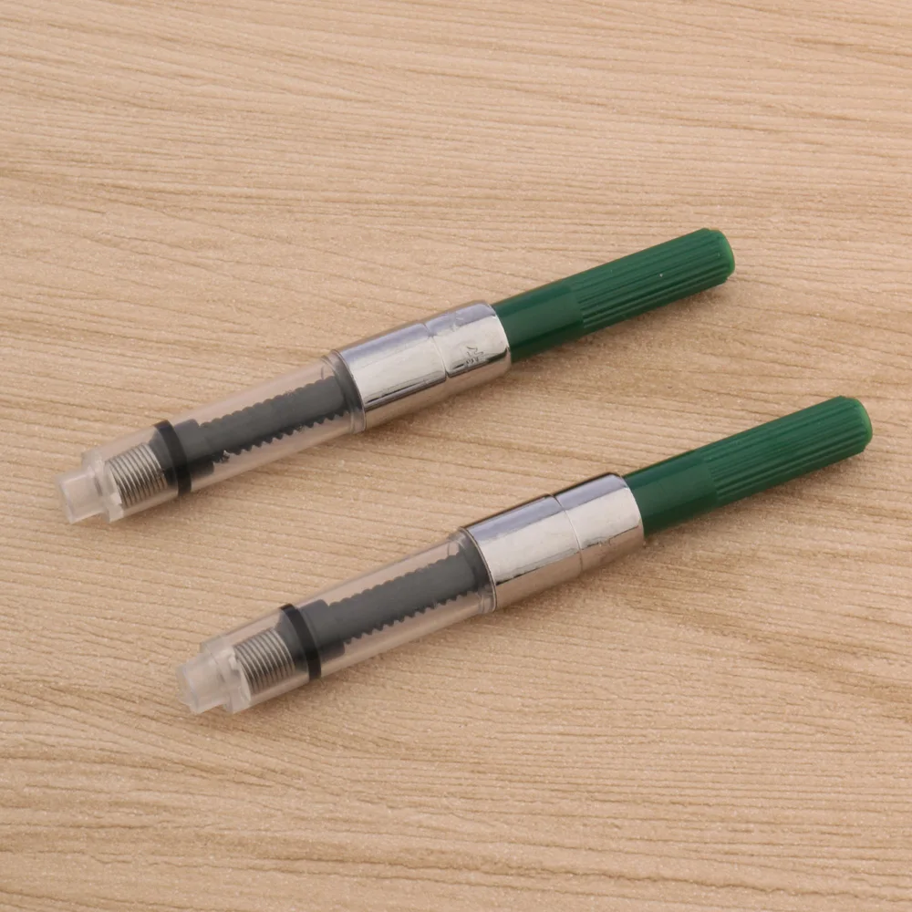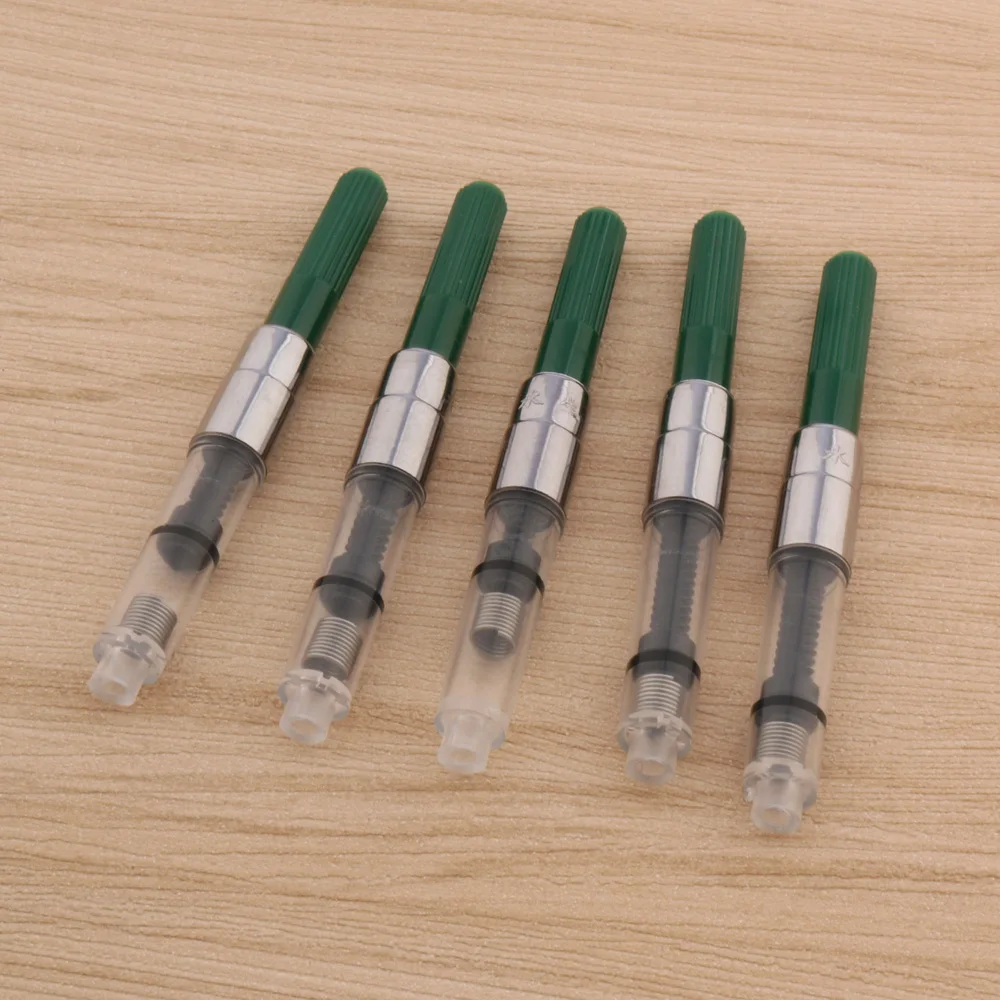 Imagine elevating your writing experience with this set of five high-quality ink converter pen refills. Perfect for fountain pen enthusiasts, these refills combine practical functionality with eye-catching design. Each refill is 65mm long, with a 0.26 cm (2.6mm) joining size that fits seamlessly into your existing fountain pens. The transparent body allows you to monitor ink levels easily, while the black rubber piston ensures smooth ink flow. The bright green, ribbed, tapered plastic cap adds a splash of color and a textured grip for effortless handling. Designed for durability and ease of use, these refills make your writing smooth, vibrant, and consistent. Whether for everyday writing or special projects, they bring a fresh, stylish touch to your pen collection.