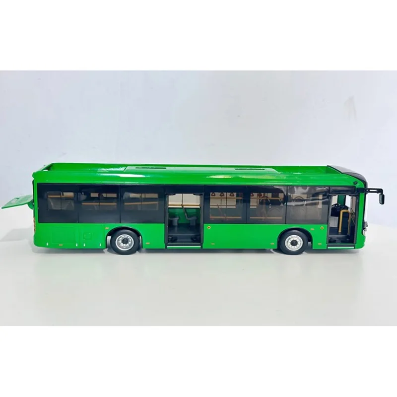 This detailed 1:42 scale diecast model of a JinLong bus measures approximately 29 cm in length, 7.5 cm in width, and 7.8 cm in height. Crafted from zinc alloy, engineering plastic, and rubber, it features functional doors that open and close, along with an opening front hood, making it an interactive and realistic display piece. The vibrant A color scheme highlights a modern, aerodynamic design with sleek, black-framed large tinted windows, a streamlined silhouette, and detailed side mirrors for an authentic urban bus appearance. Perfect for collectors and enthusiasts, this static model is ideal for display, memorial, or gifting purposes, suitable for ages 14 and above.