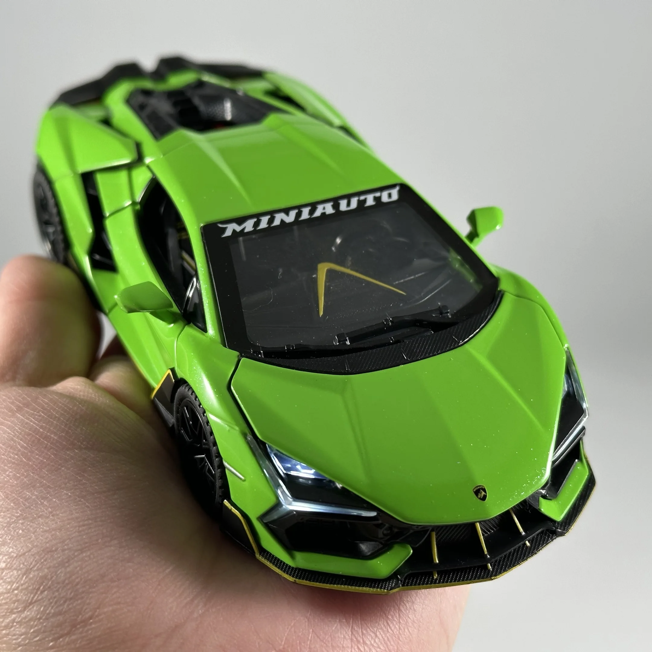 Transform your space with a detailed and eye-catching replica of the Lamborghini Revuelto. Whether for your personal collection or as a stylish decor piece, this model embodies speed, luxury, and craftsmanship. Its realistic detailing and vibrant color options make it a highly desirable addition for enthusiasts who value quality. With its robust metal construction and precision craftsmanship, it’s a keepsake that will impress both casual viewers and serious collectors alike. Make this striking green Lamborghini Revuelto yours today and enjoy the sophisticated allure of one of the world's most iconic supercars.