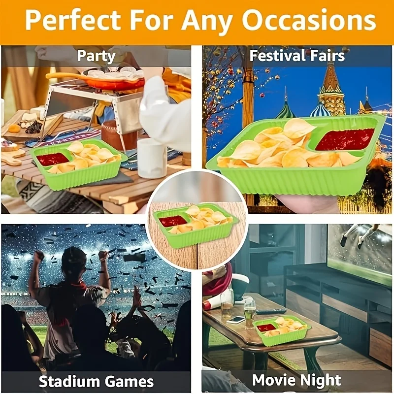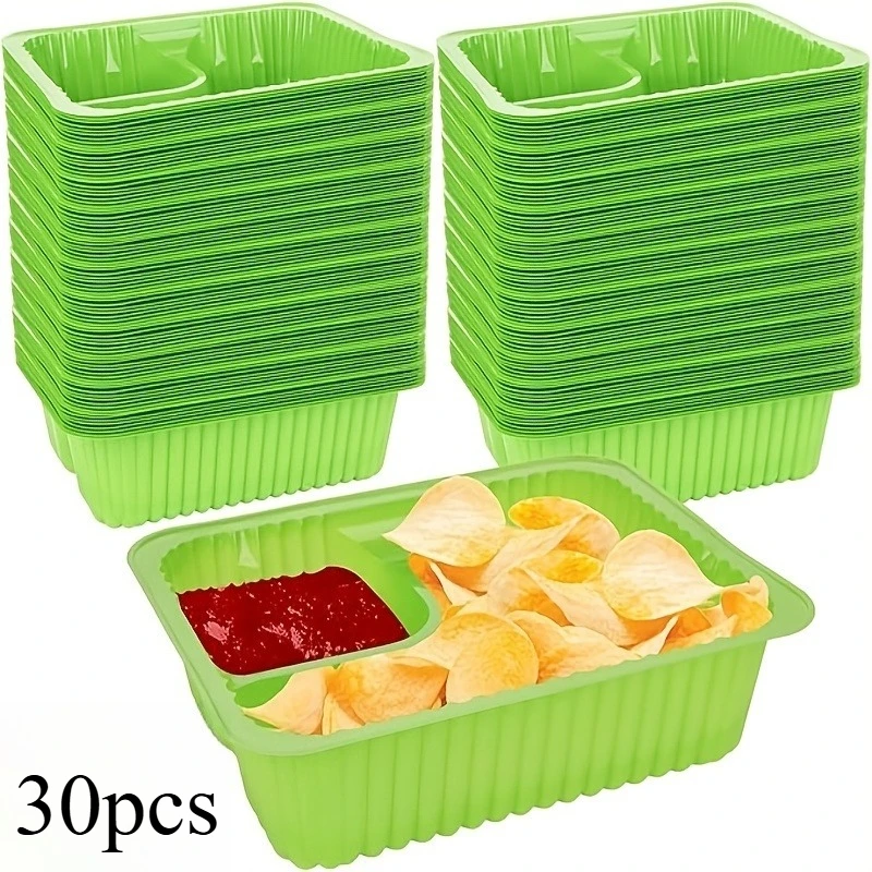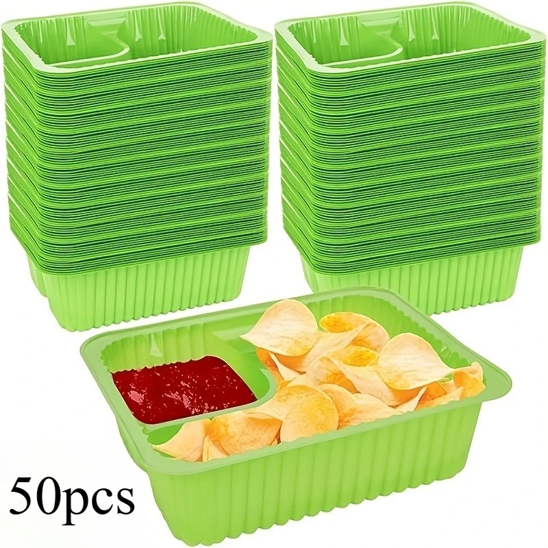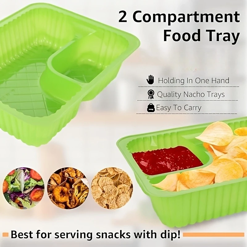 Enhance your party and holiday gatherings with this set of vibrant green nacho trays, crafted from durable PE plastic. Available in packs of 15, 30, or 50 pieces, these rectangular trays feature a subtle striped pattern on their surface and slightly raised edges to prevent spills. The smooth, rounded corners and ribbed sides provide both a sleek aesthetic and a practical grip, making them ideal for serving cheese dips, snacks, or party foods during Christmas, Halloween, Easter, Hanukkah, and Thanksgiving. Perfect for casual occasions, these classic-style trays combine functionality with a lively visual appeal, ensuring your food presentation is both attractive and hassle-free.