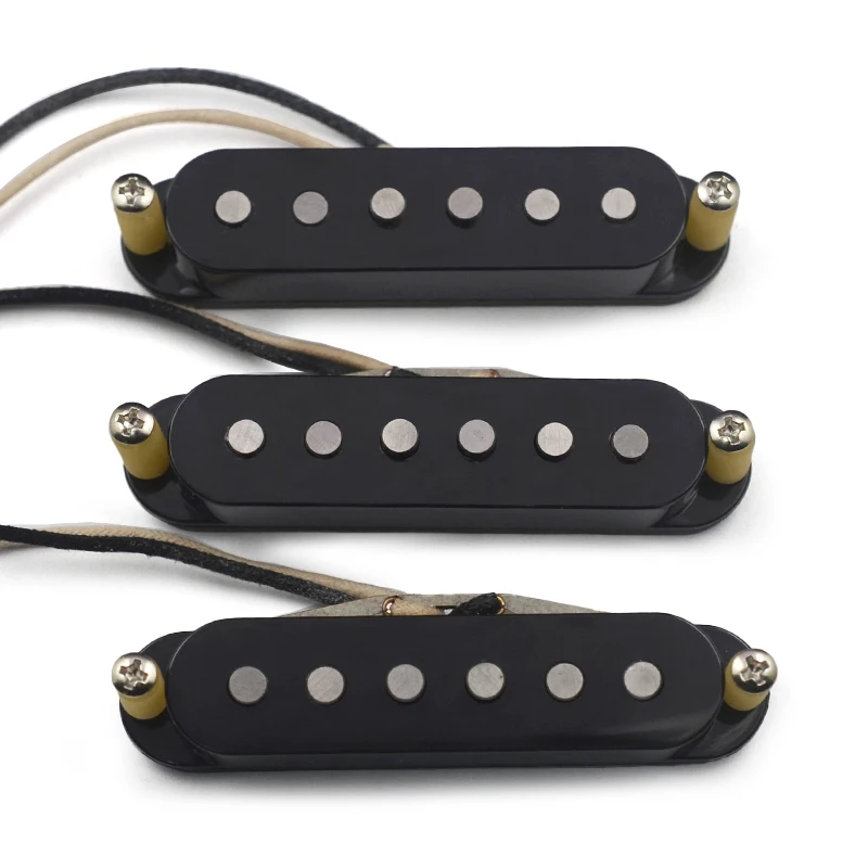 - This set includes three handwound single-coil pickups with Alnico 5 magnets and staggered top pole pieces for rich tone and dynamic response across positions.