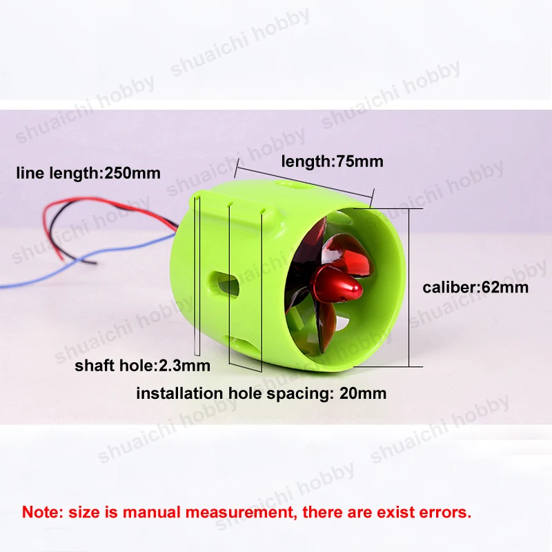 - Includes a 250mm insulated cable for flexible connection to your RC system; manual size measurement may have minor inaccuracies, and it is designed for use in freshwater environments only.
