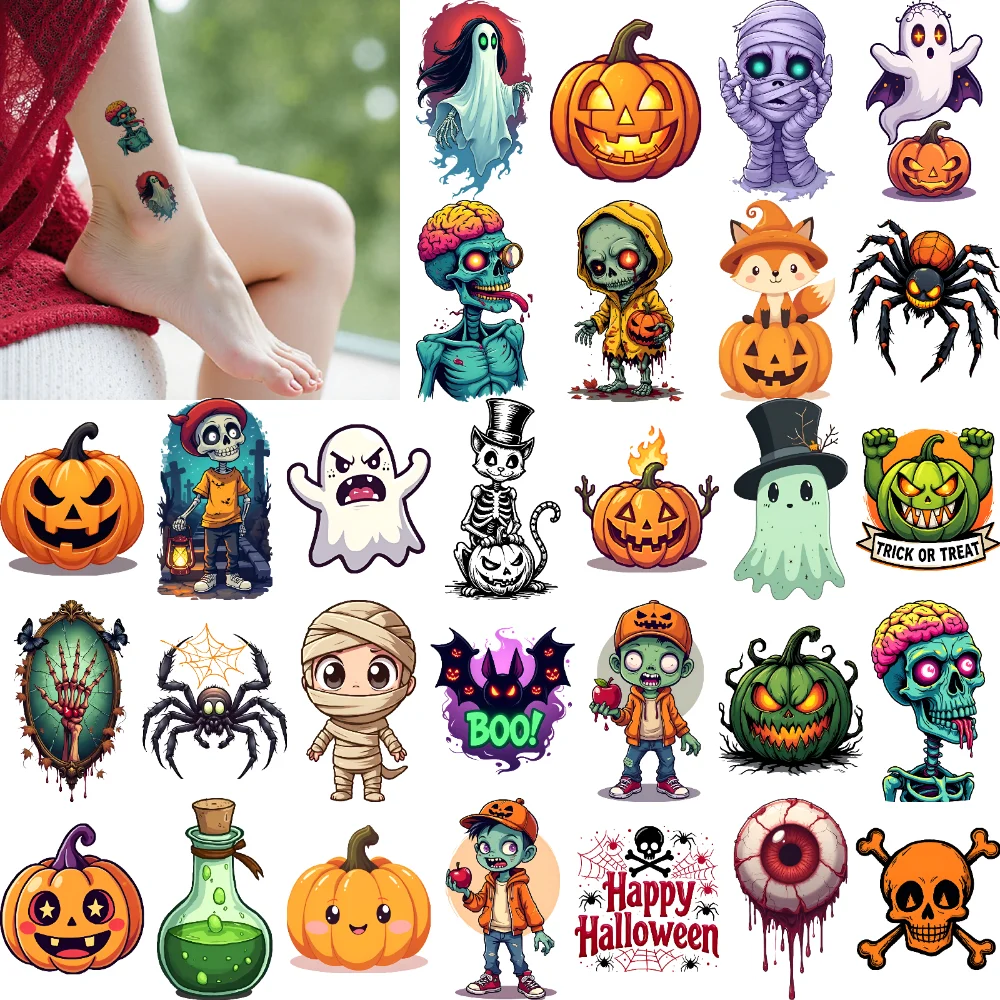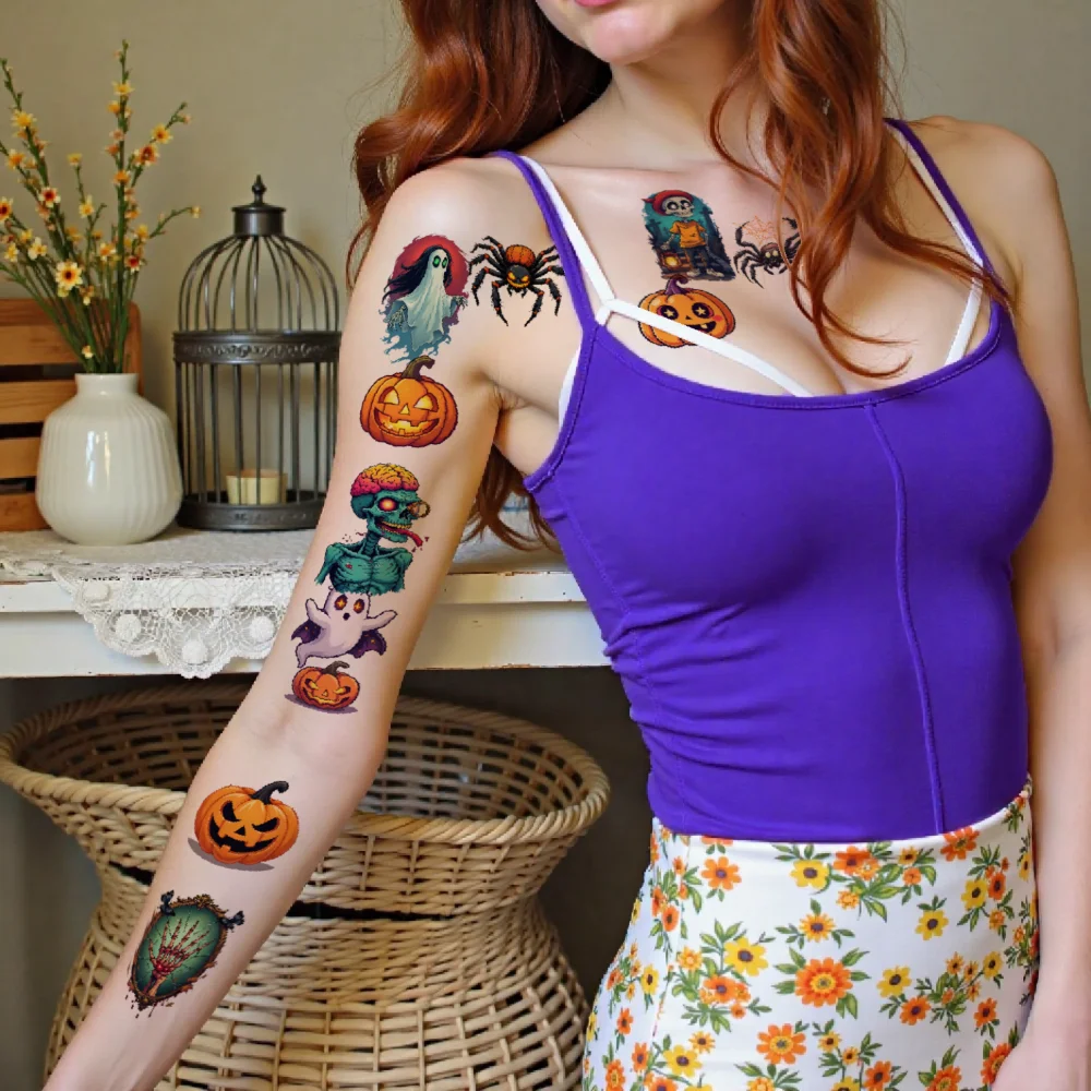 - Each tattoo measures approximately 3×3 cm, suitable for arms, legs, and the body, making them perfect for creative Halloween decorations.