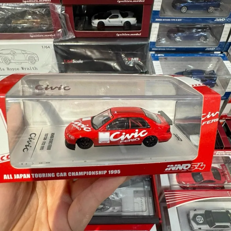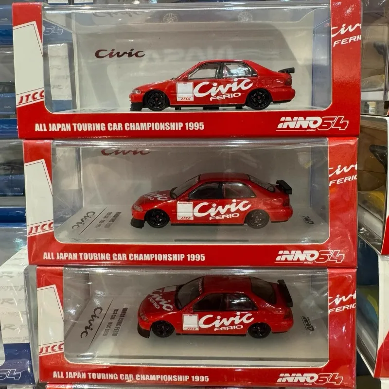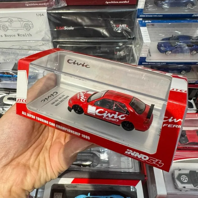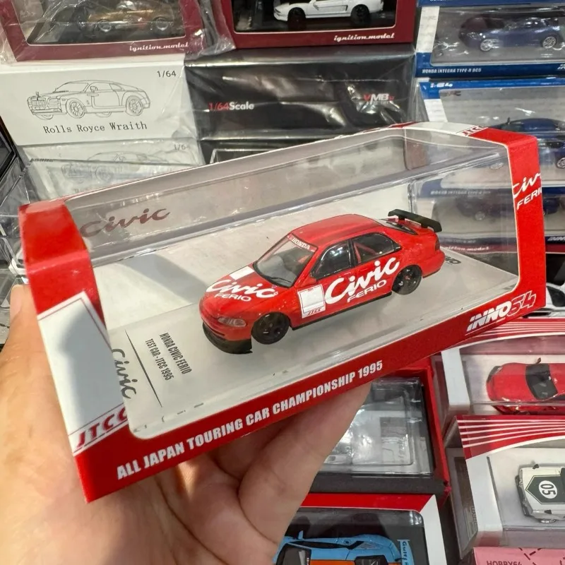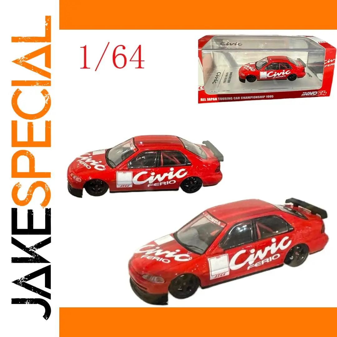 This 1/64 scale diecast model of a Honda Civic EG8 captures a stunning championship red livery, crafted from metal, plastic, and rubber. Its sleek, aerodynamic design features detailed front headlights, transparent windshield, and black alloy wheels with rubber tires. White decals and a sporty rear spoiler add visual appeal, making it ideal for display, collection, or as a gift. Measuring approximately [insert estimated dimensions], this collectible piece is designed for enthusiasts aged 14 and above, offering a realistic and vibrant miniature of the iconic Civic EG8, perfect for enhancing any vehicle collection or display.