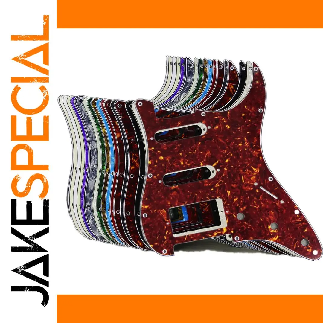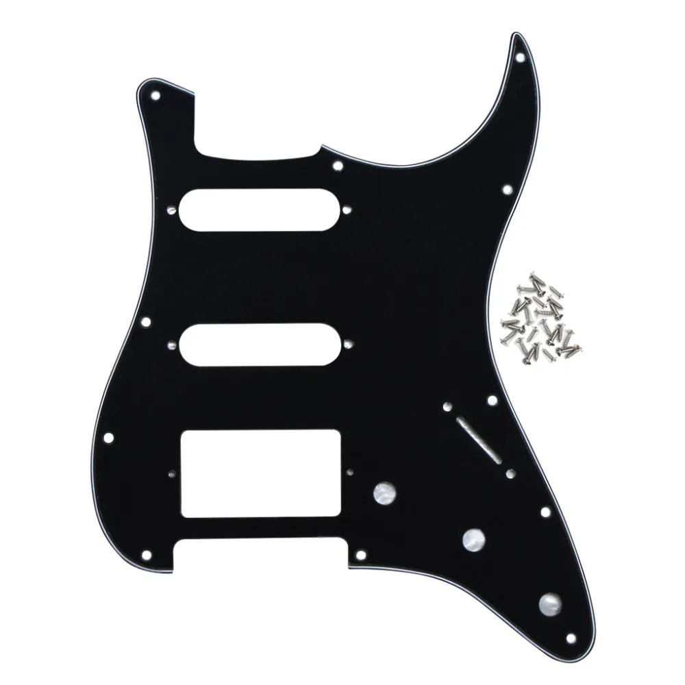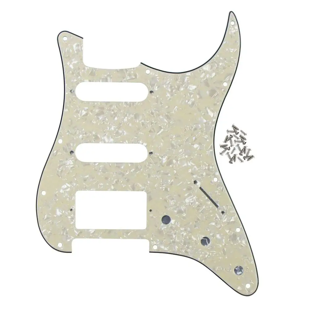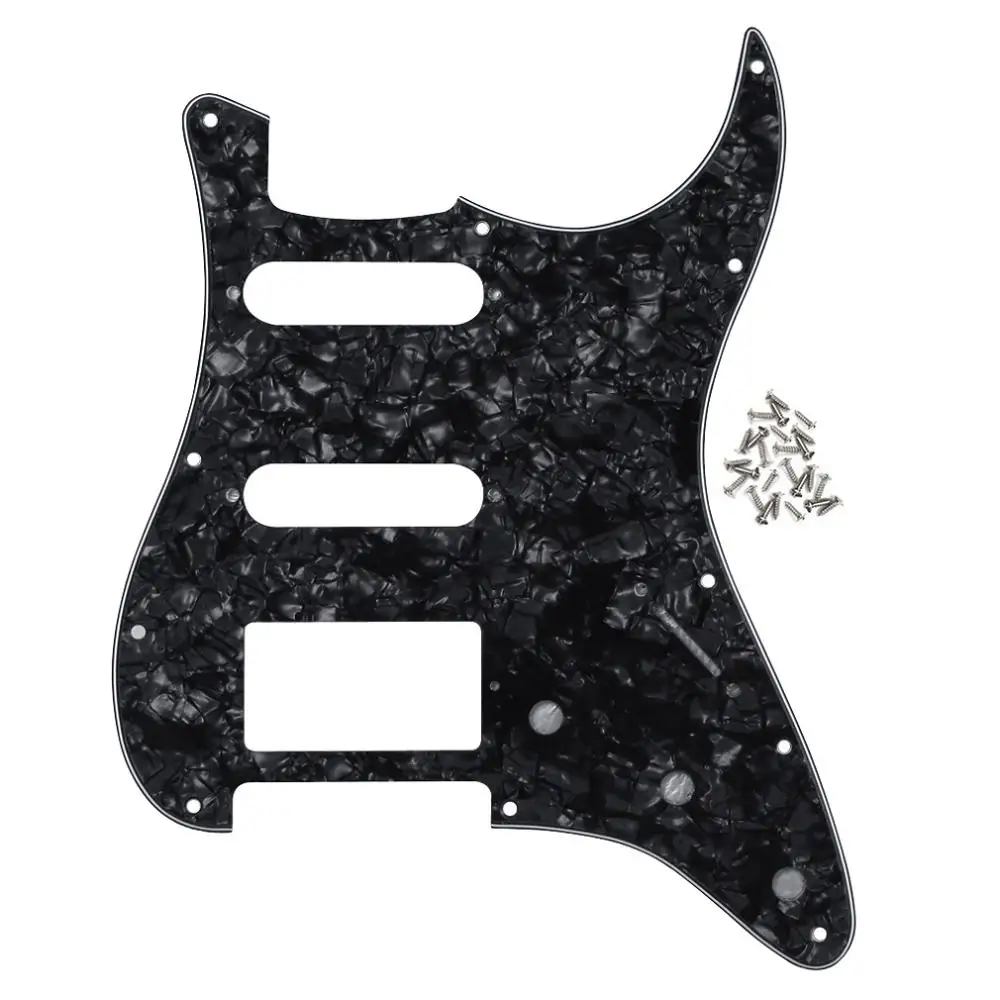 Elevate your guitar’s look and performance with this versatile HSS pickguard designed for ST-style electric guitars. Crafted from durable 3-ply PVC or a combination of 3-ply PVC and 1-ply celluloid, it features enhanced shielding with a pure aluminum foil backing to reduce interference. Measuring to fit most American and Mexican standard Fender-style guitars, it includes 11 screw holes with offset positioning and beveled, smooth edges for a polished appearance. Available in 21 striking colors such as aged pearl, black, cream, mint green, and tortoise shell, this set includes one pickguard and 25 mounting screws—perfect for customizing your guitar’s style and sound.