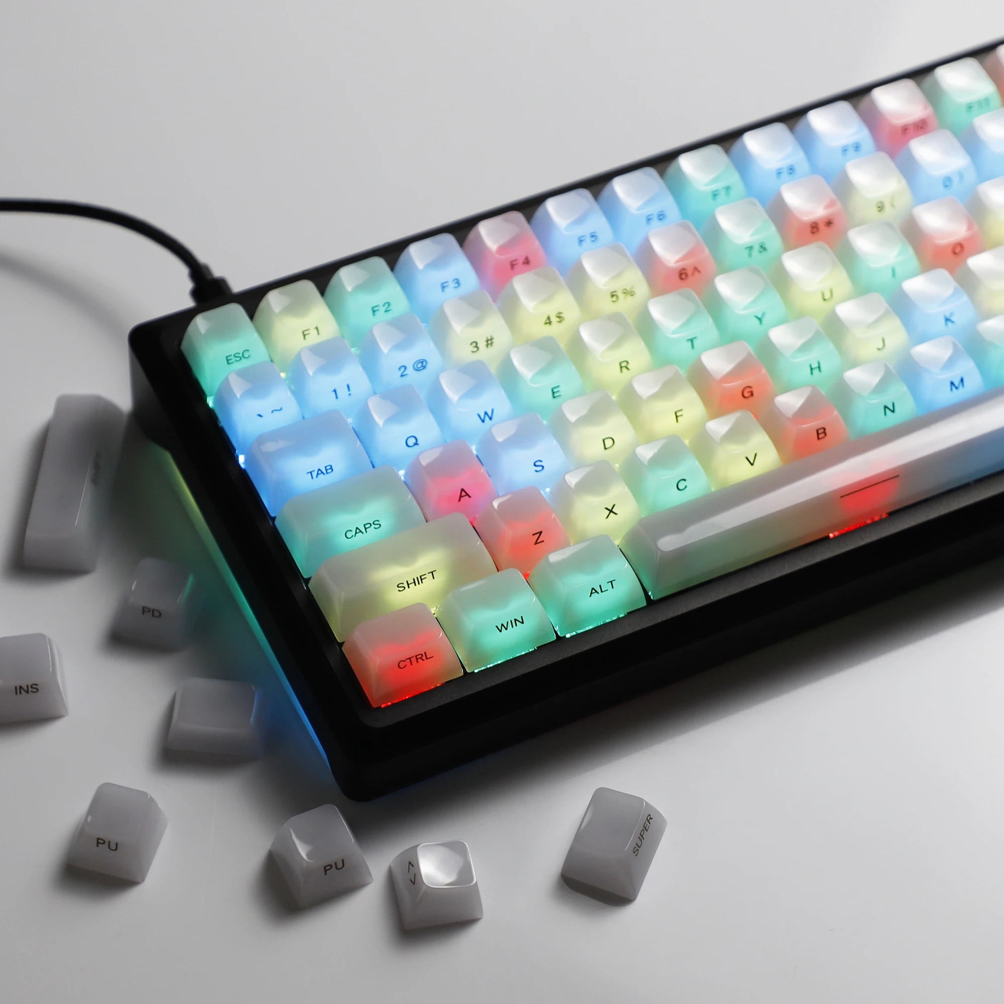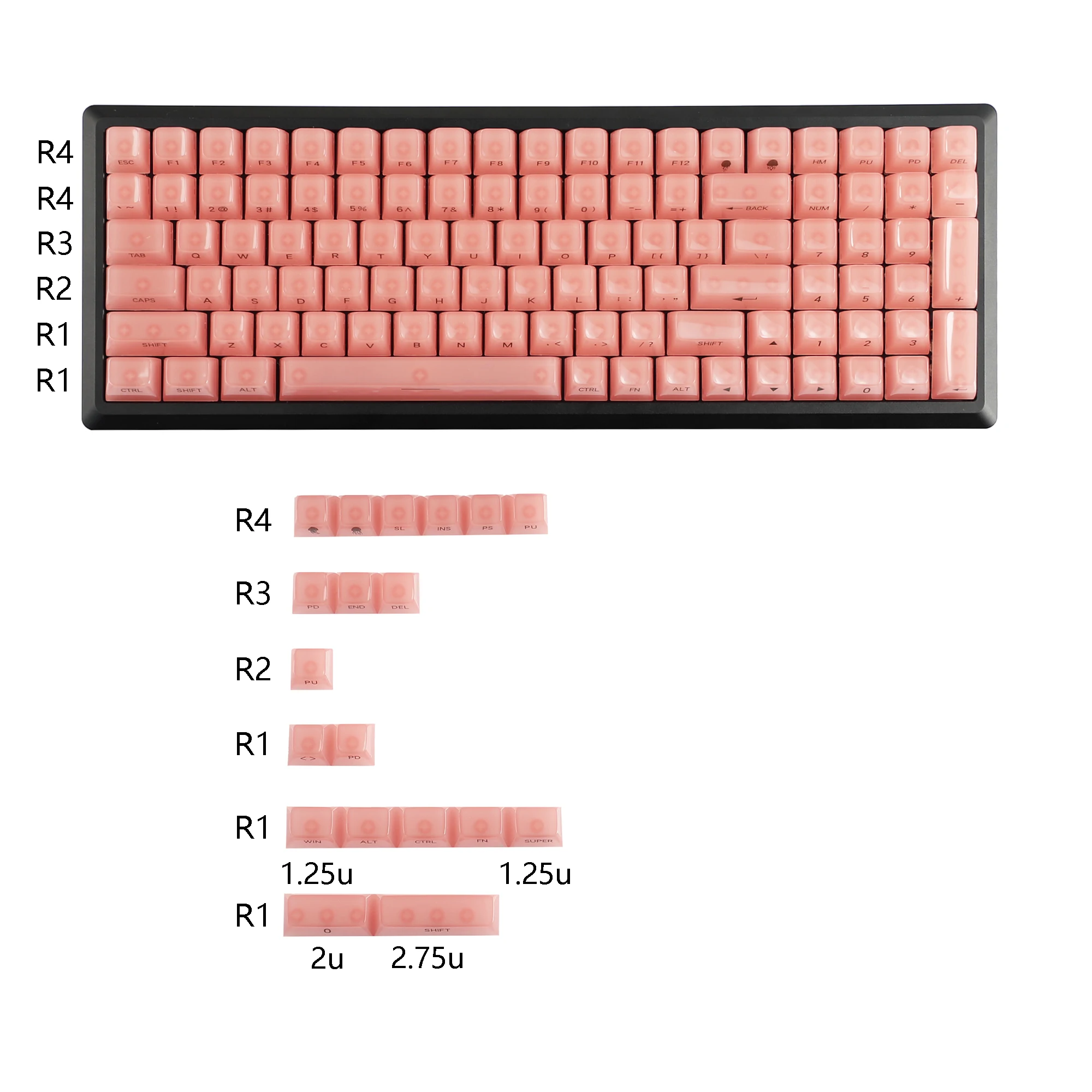 Enhance your mechanical keyboard with these vibrant 119-key jellyfish-themed keycaps in Pink, White, or Red, crafted from durable PC material. Featuring a sleek MDA profile that closely resembles OEM, these keycaps offer an ergonomic typing experience with a height range from R4 to R1. The five-sided shine-through effect amplifies RGB lighting, creating a stunning, colorful glow that transforms your setup. Compatible with most 61, 64, 67, 68, 84, and 87 MX mechanical keyboards with a 6.25u spacebar (around 4.61″), excluding low-profile MX, Corsair, Logitech, Razer, and APEX models with raised LEDs. Elevate your keyboard aesthetics and enjoy a lively, unique look.