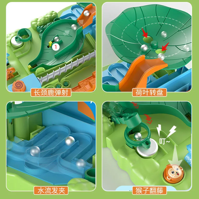 Immerse your child in an engaging jungle adventure with this vibrant desktop game, which features a dynamic maze ball designed to stimulate focus and intelligence. Crafted from durable, child-safe plastic, this obstacle challenge encourages problem-solving and hand-eye coordination. Its colorful, jungle-inspired design, with lush green pathways, leaf-shaped structures, and playful accents in orange, blue, and other vivid hues, creates a lively and inviting environment. Perfect for children ages 6 to 12, this puzzle-style game offers a fun way to develop concentration while enjoying an exciting adventure. Its smooth, rounded edges ensure safe play, making it a great addition to your child's educational collection and playtime activities.