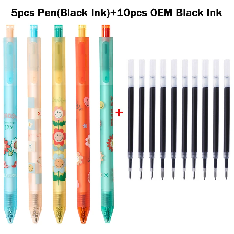 - The ink colors available include black, blue, and red in OEM configurations, compatible with various refills, each approximately 11cm tall depending on the model.