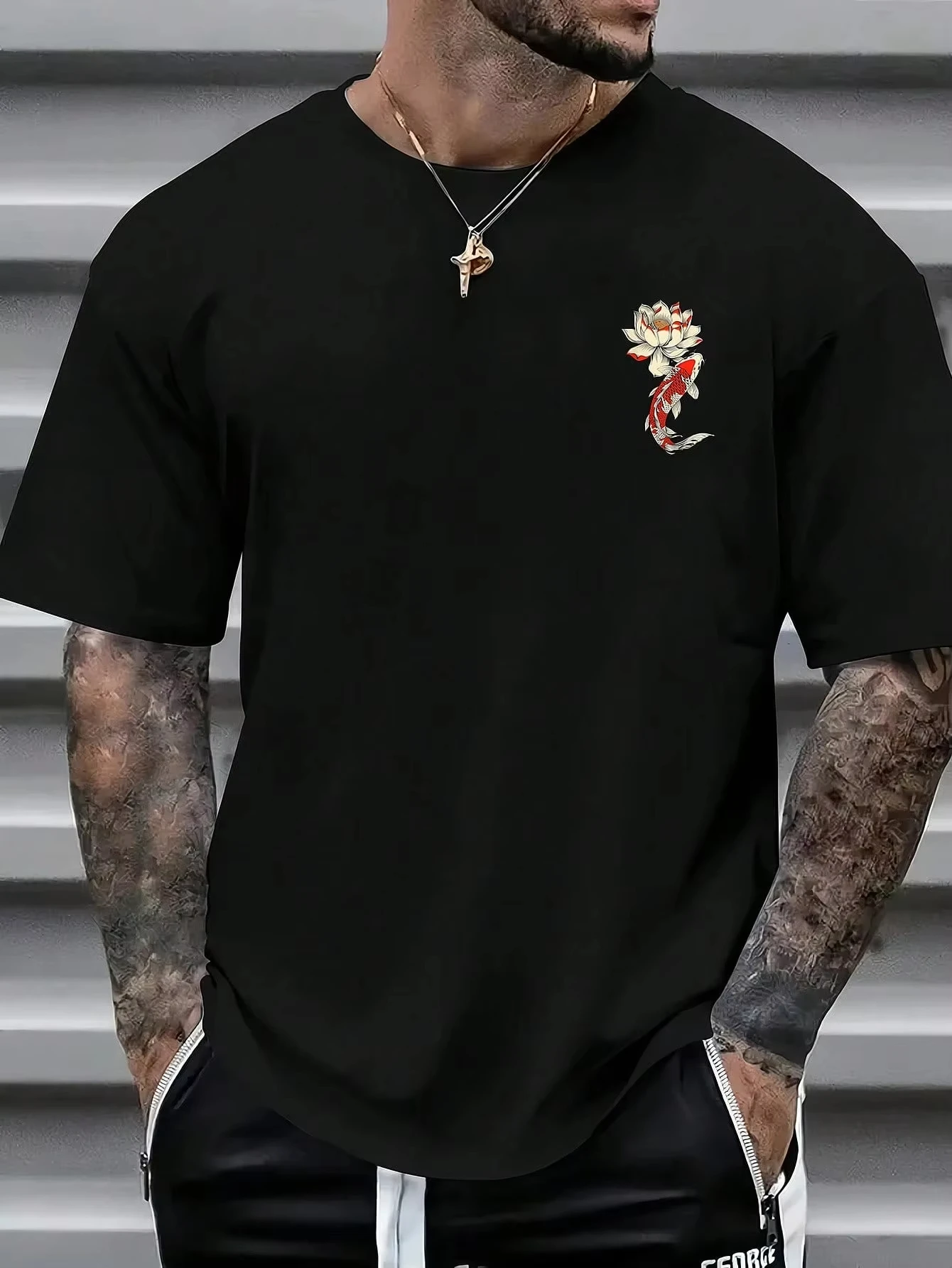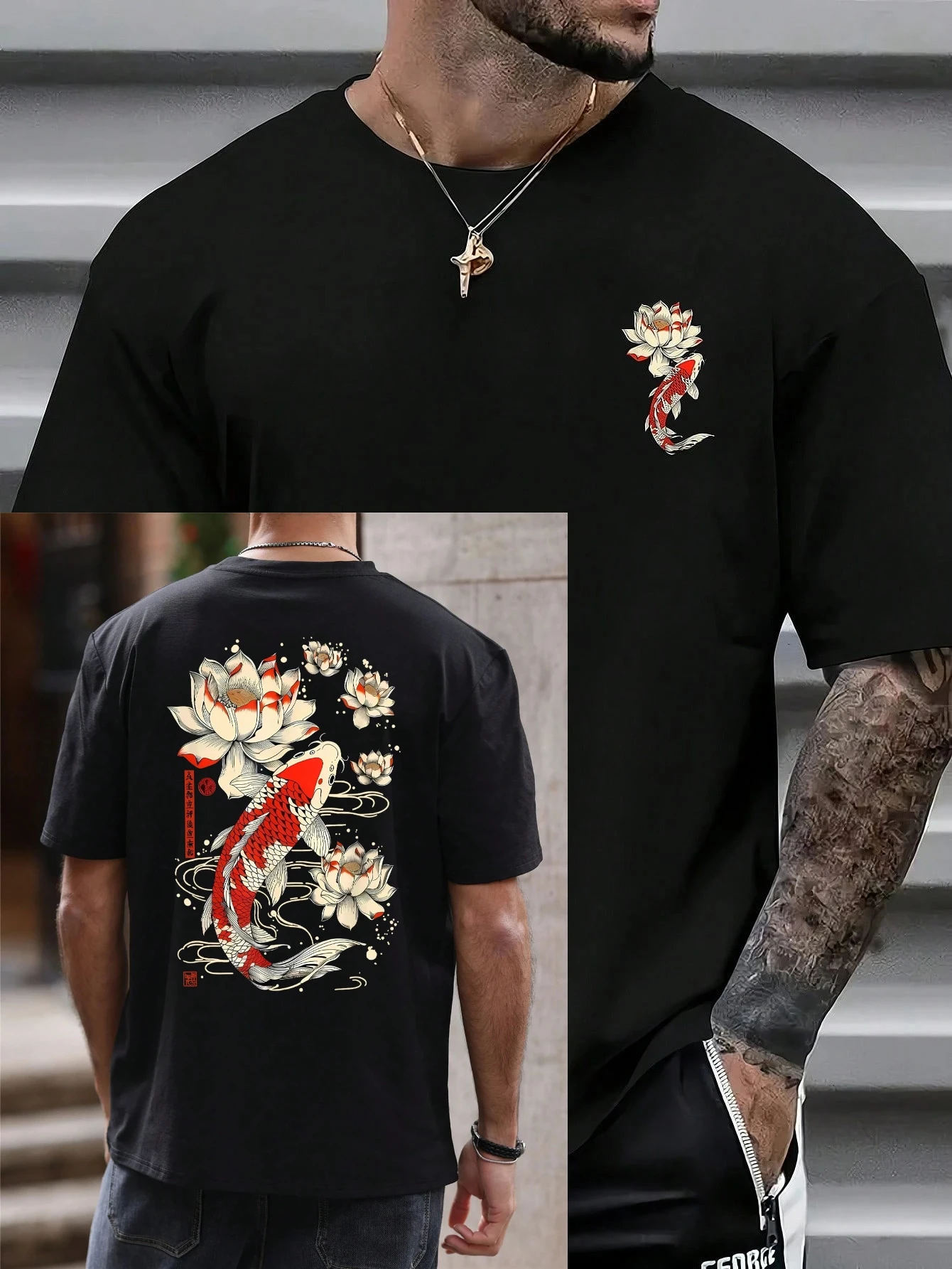 This Vibrant Koi Fish and Lotus T-shirt for Men