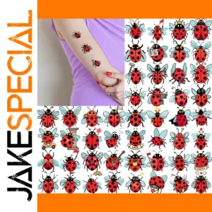Transform your look with this set of 54 vibrant, waterproof ladybug temporary tattoos, each approximately 3 cm long and 1 to 4 cm wide. Featuring playful, 3D cartoon-style ladybugs with expressive faces, crowns, musical instruments, and flowers, these tattoos are perfect for arms, legs, or the body. They last between 3 to 7 days and are easy to apply within 30 seconds using a wet sponge or cloth. Designed for individuals aged 14 and above, these waterproof, chemical-free body stickers are ideal for parties, birthdays, holidays, and special occasions, adding a fun, whimsical touch to your style.