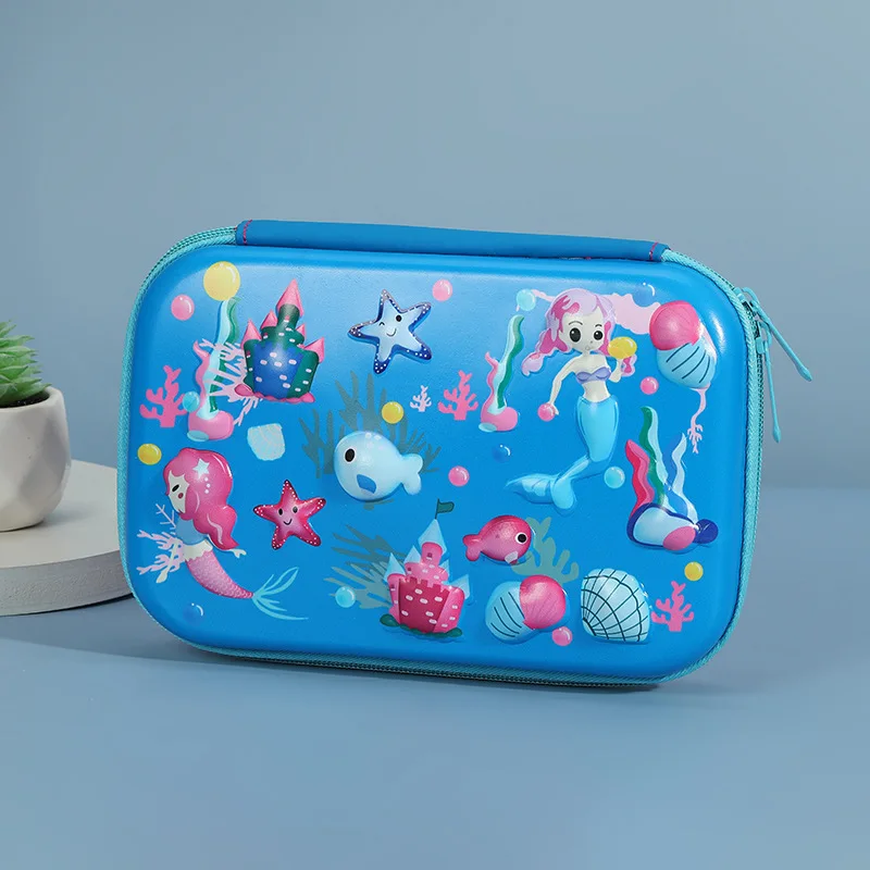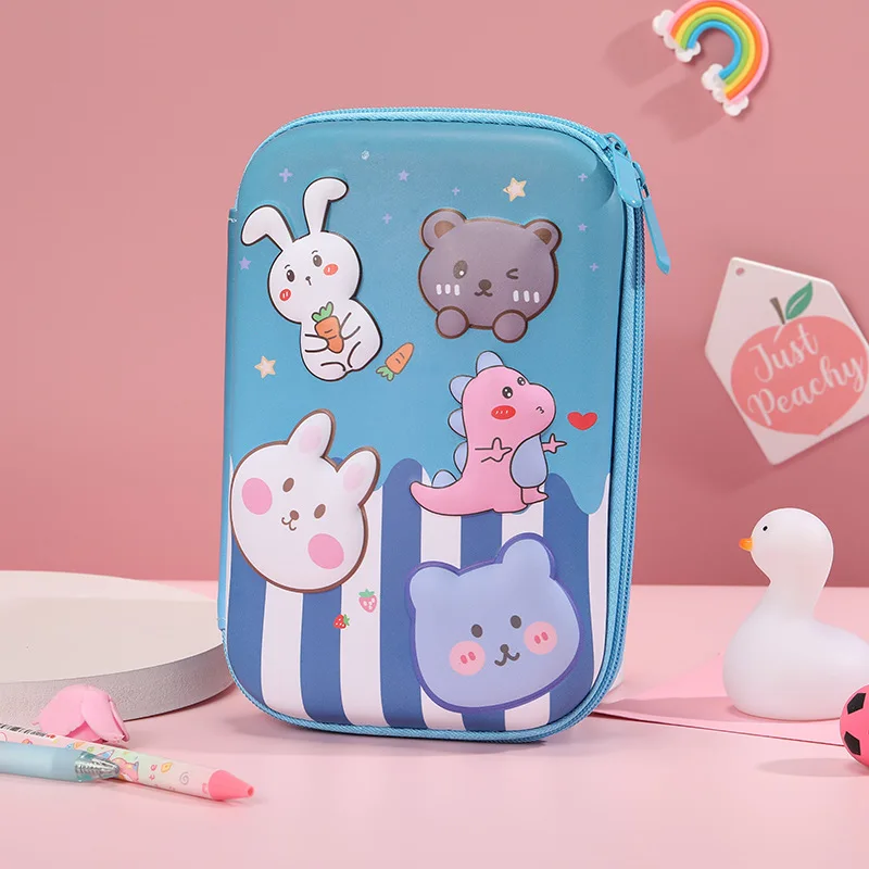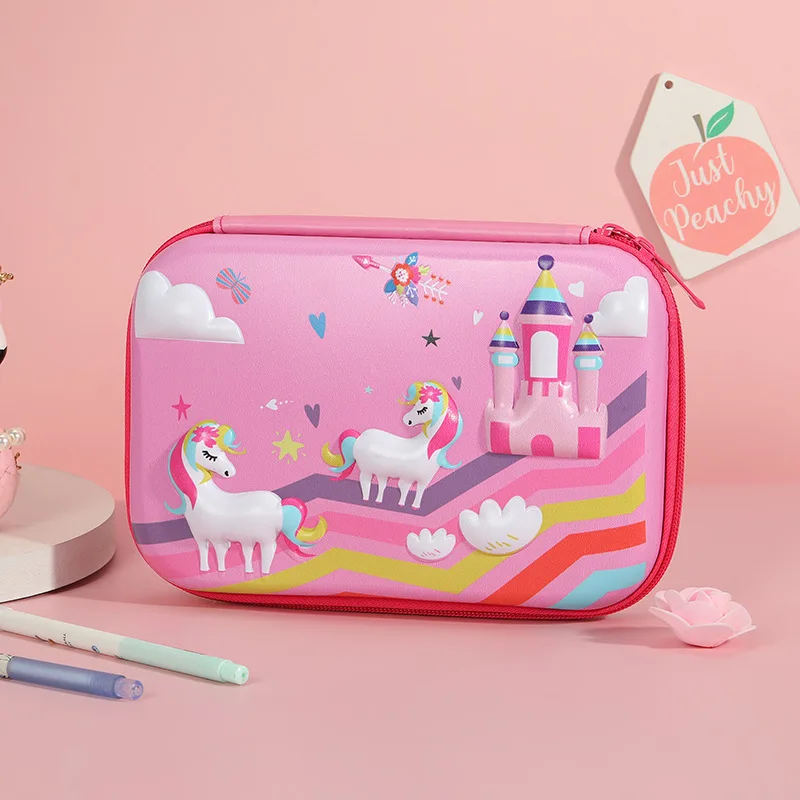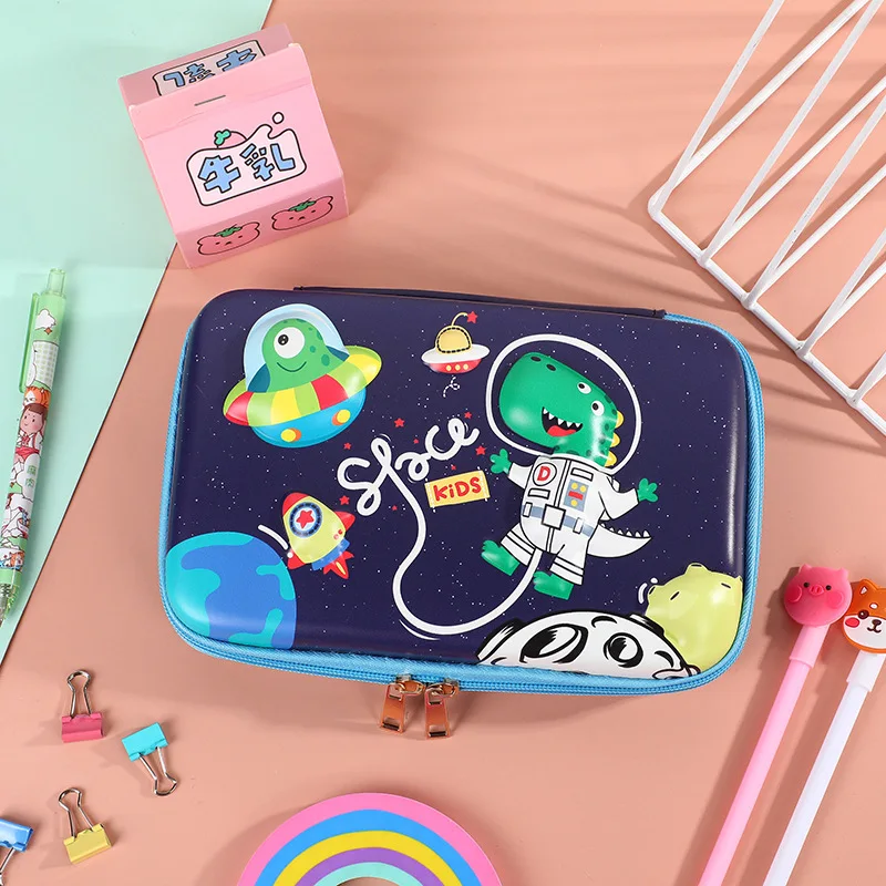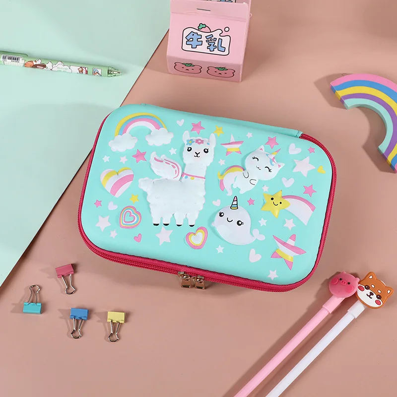 This vibrant and playful large capacity pencil box is an essential accessory for students and office-goers alike. With dimensions of 23.5 cm in length, 4 cm in width, and 15.5 cm in height, this pencil case offers ample storage for pens, pencils, and other stationery items. Crafted from a durable blend of EVA and fabric, it ensures longevity while maintaining a lightweight feel. Available in eye-catching designs such as the playful green dinosaur, lively robot themes, and magical pink unicorns, this pencil box adds a splash of fun to organization. Its pastel blue zipper closure and contrasting edges further enhance its appealing aesthetic, making it an ideal choice for school or work.