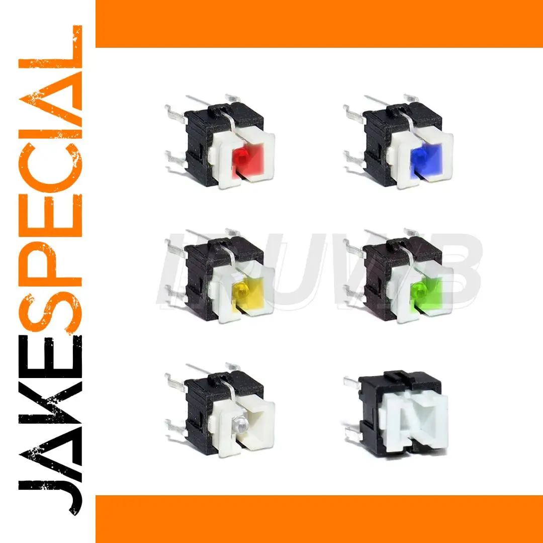 Enhance your electronic projects with this premium set of tactile switches designed for precision and durability. Each switch measures 6mm x 6mm with a height of approximately 7.2mm, making them ideal for compact spaces. The included options feature built-in LEDs in striking red, yellow, green, and blue colors, providing clear visual feedback, while some switches come without LED illumination for a sleeker look. Crafted with high stability and excellent self-healing properties, these new condition switches ensure long-lasting performance. Their minimalist, square design with raised actuators delivers a satisfying tactile response. Perfect for DIY electronics, custom keyboards, or device interfaces, these switches combine technical reliability with visual appeal, making your projects truly stand out and function flawlessly over time.