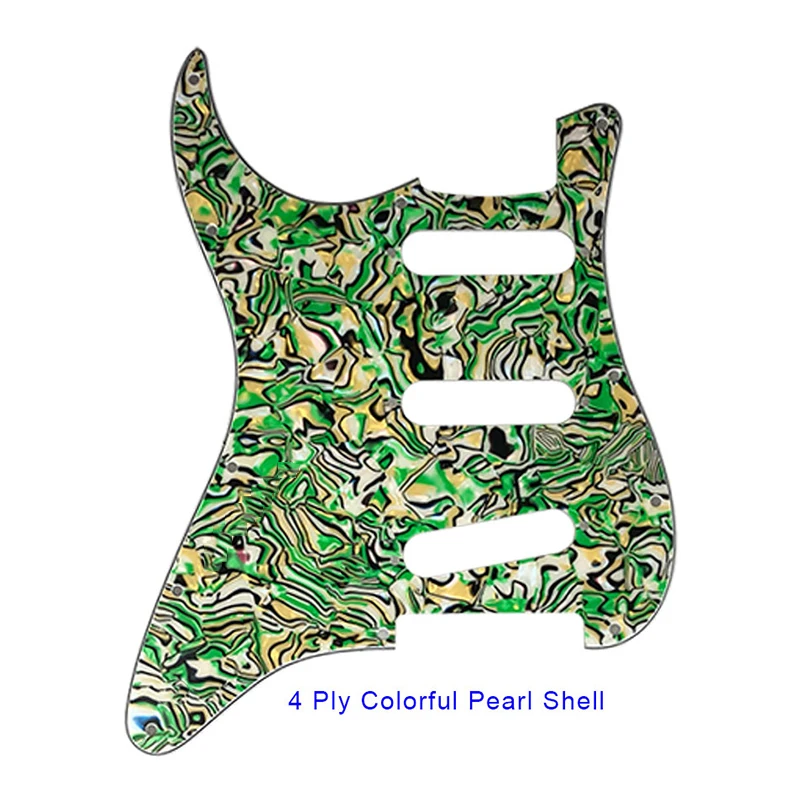 Experience the perfect blend of style and durability with this vibrant Fei Man Custom Pickguard designed specifically for left-handed players. Crafted with high-quality 4-ply or 3-ply PVC plastic, it offers excellent scratch resistance and long-lasting protection for your guitar. Applied with a protective film on top, this pickguard maintains a sleek, glossy finish even after extensive use. Its aluminum foil shield significantly reduces noise, enhancing your playing experience. Whether you prefer bold solid colors, shimmering metallics, or eye-catching patterns like tortoise shell and leopard print, this pickguard delivers vibrant visual appeal. Compatible with US and Mexico FD Stratocaster models, featuring 11 screw holes, it fits standard SSS pickups precisely. Elevate your guitar's aesthetic and sonic quality today.