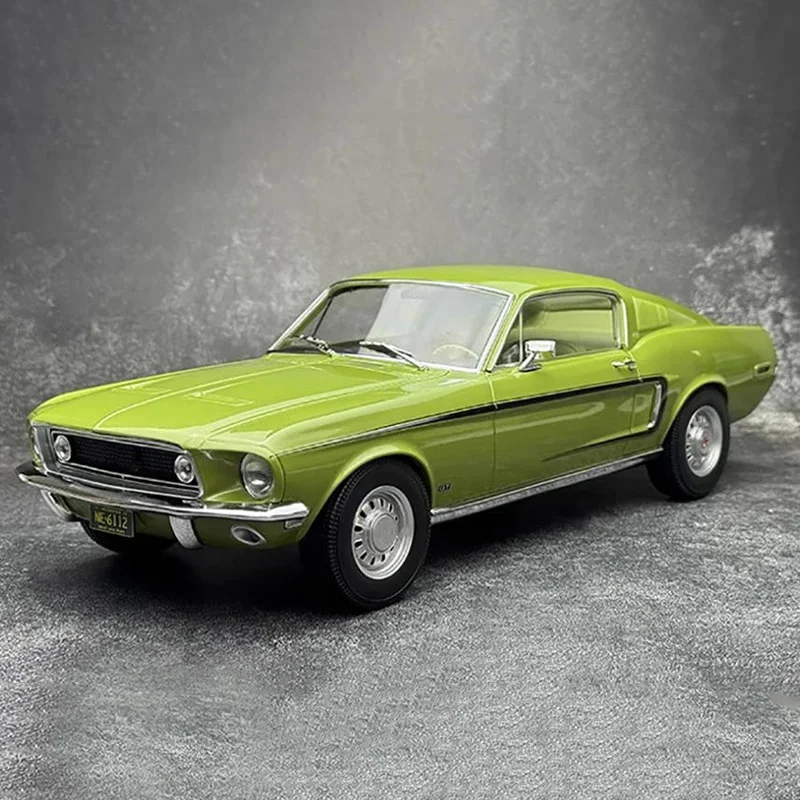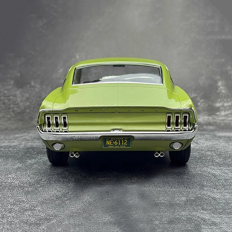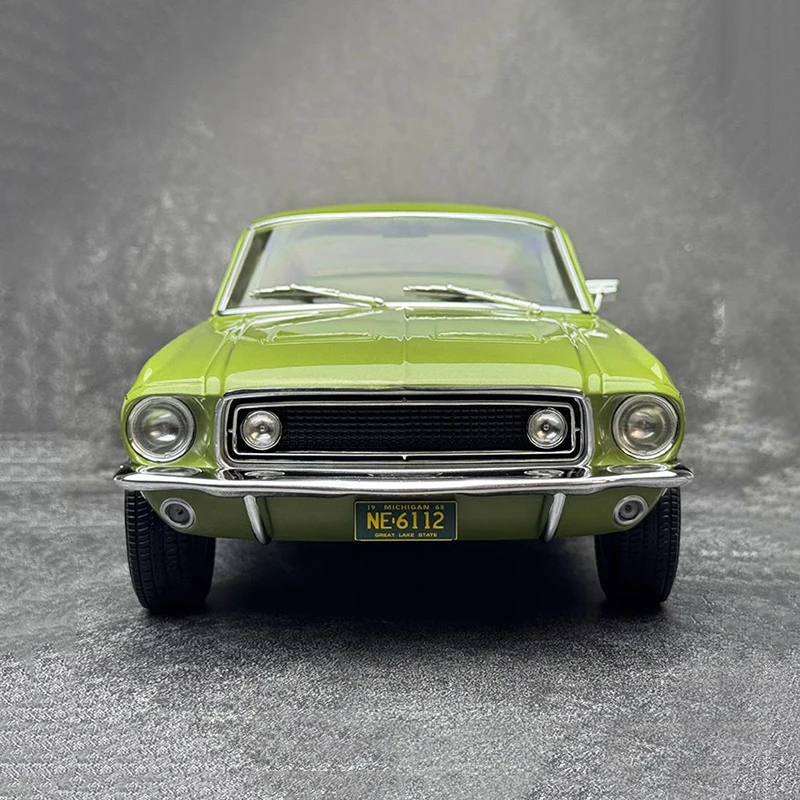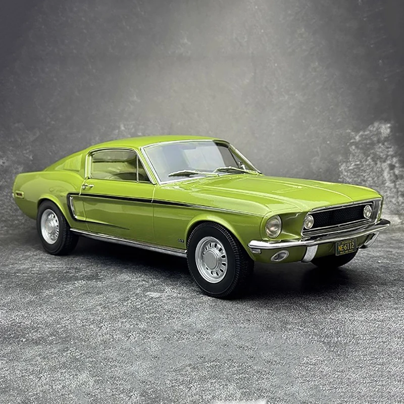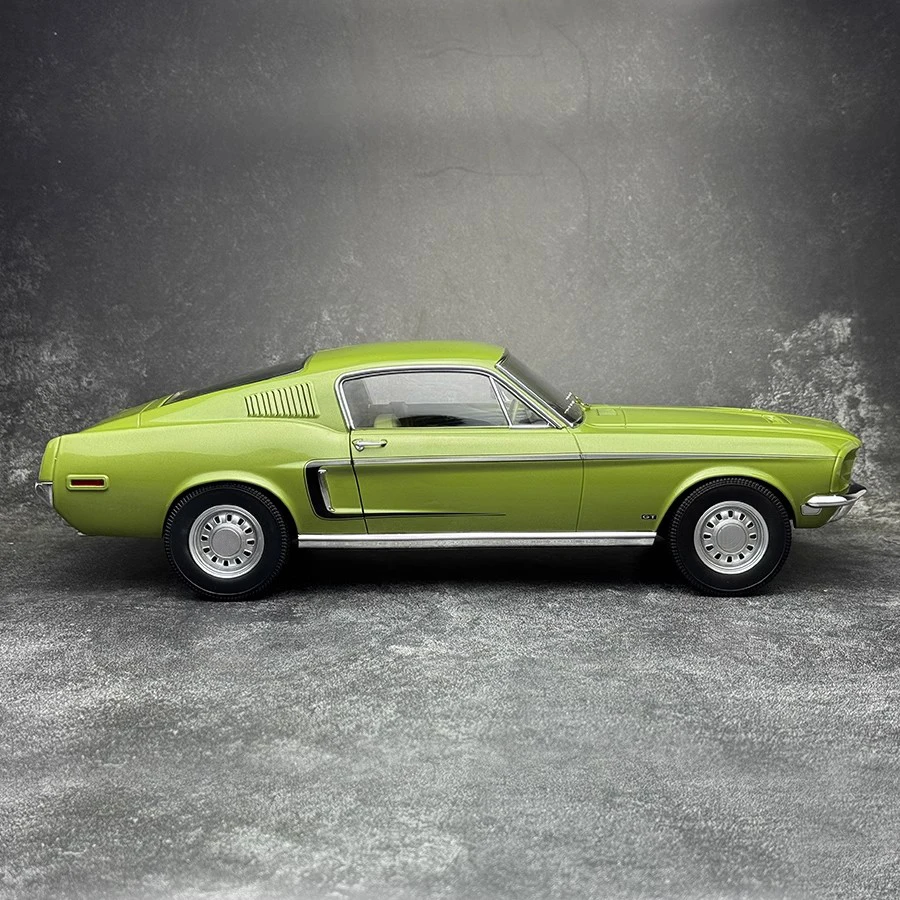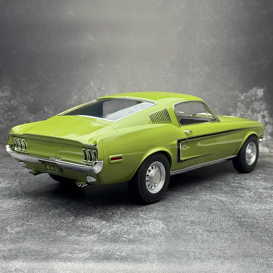 - This 1/12 scale model measures 38 cm in length, 15 cm in width, and 11.2 cm in height, perfectly capturing the proportions of the vintage 1968 Mustang GT Fastback for display enthusiasts.