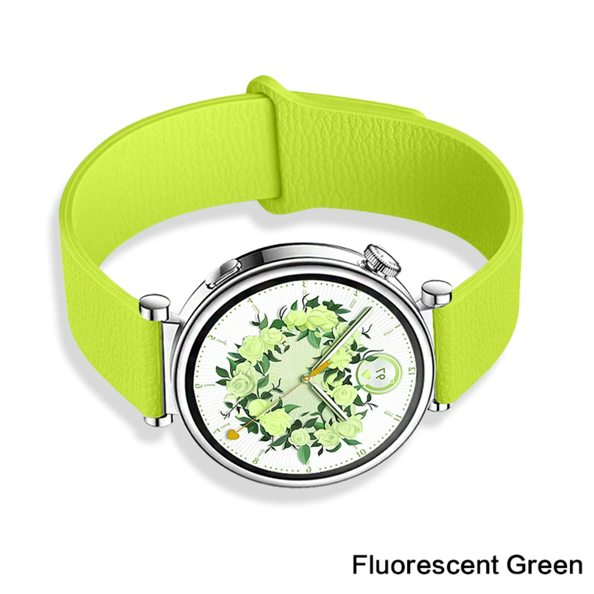 Experience a perfect blend of style and comfort with this vibrant lime green silicone strap designed for a wide range of smartwatch models. Its textured surface and flexible material make it ideal for active lifestyles, while the polished silver case offers a sophisticated touch. Whether you're heading to the gym or out for a casual day, this strap adds a pop of color and modern flair to your device. Its adjustable magnetic clasp ensures a secure fit for all-day wear, and the vivid lime hue makes it easy to pair with various outfits. Enhance your smartwatch’s look effortlessly while enjoying the durability and comfort this high-quality silicone strap provides. Elevate your style today with this versatile accessory.