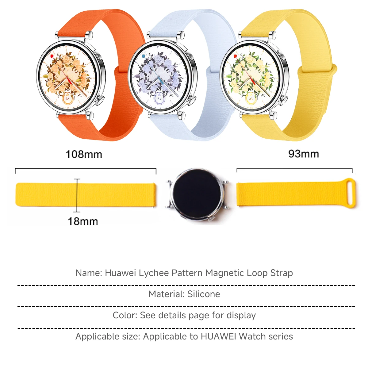 - Technical specifications include: silicone material, adjustable lengths to accommodate wrist sizes, and compatible with a variety of smartwatch sizes and models, including fitness trackers and smartwatches.