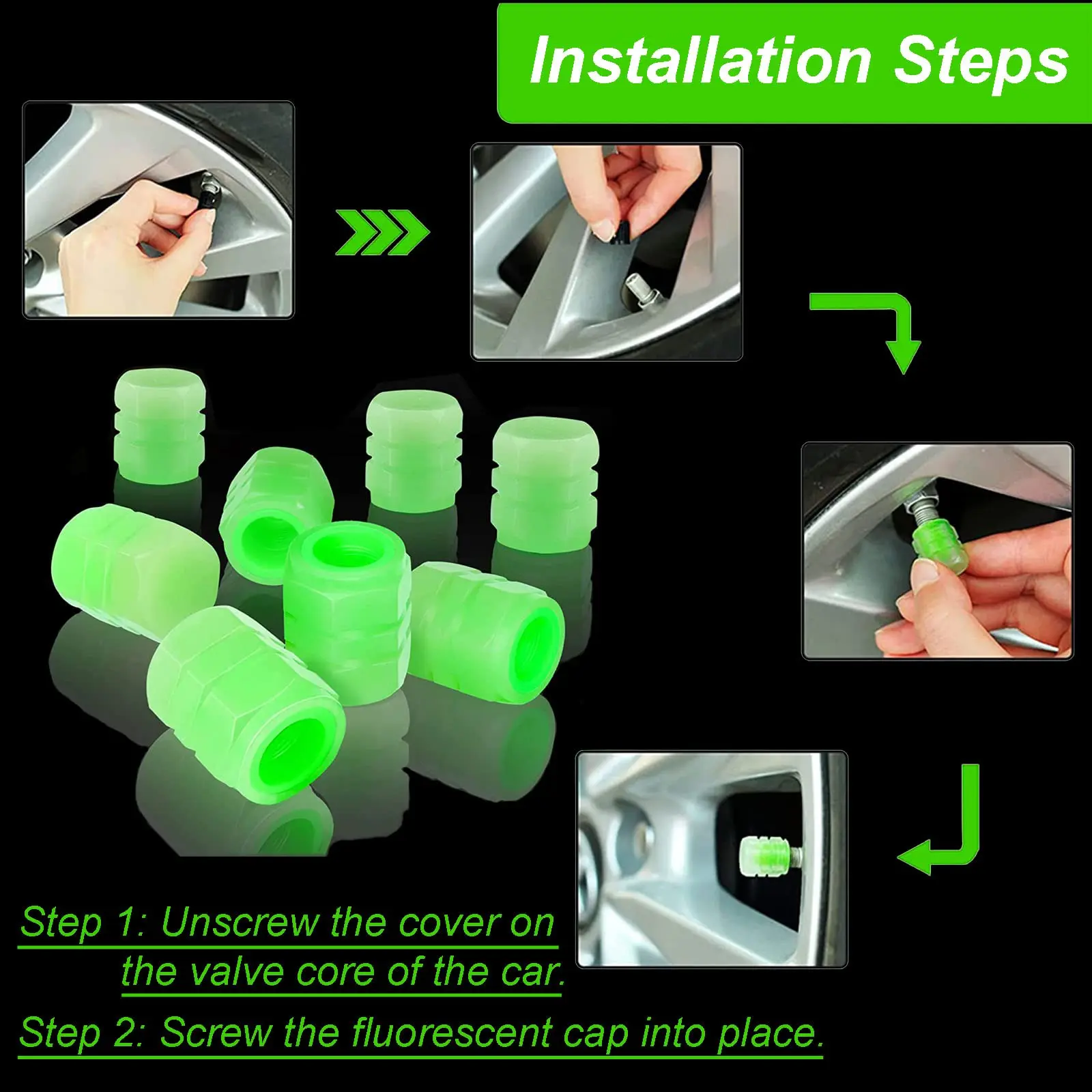 This vibrant glow of this luminous tire valve caps