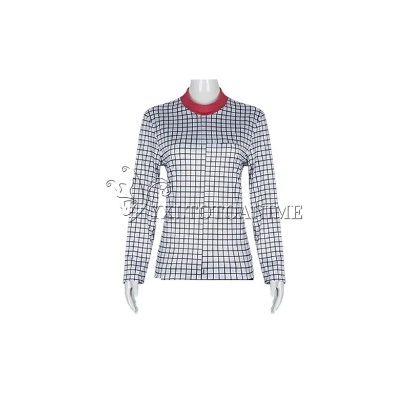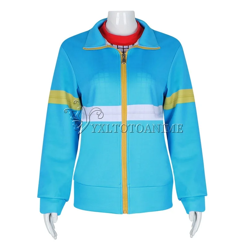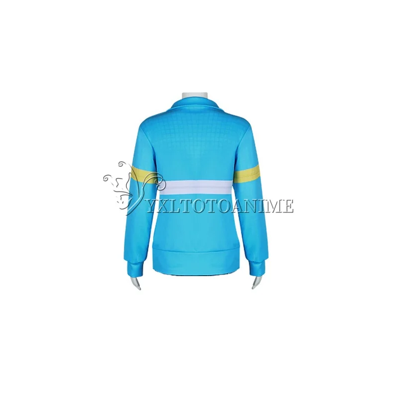 Bring your favorite character to life with this lively Max Mayfield cosplay costume set. Crafted from lightweight polyester, it offers comfort for casual wear or cosplay events. The set features a bright blue zip-up hoodie with a bold yellow stripe across the chest and arms, capturing the playful essence of the character. The gold-colored zipper adds a striking touch, running smoothly from the neckline to the bottom hem. Complemented by a light blue collar with a yellow zipper and a stylish white shirt with a black grid pattern and red collar, this ensemble exudes youthful energy. Designed for versatility, this set makes it easy to embody Max Mayfield’s fun, vibrant look at costume parties, conventions, or casual outings. Feel confident stepping into the role with this eye-catching outfit.