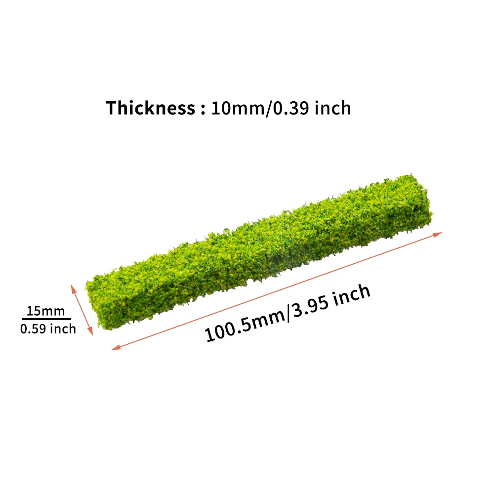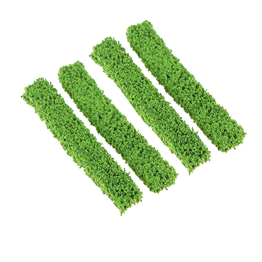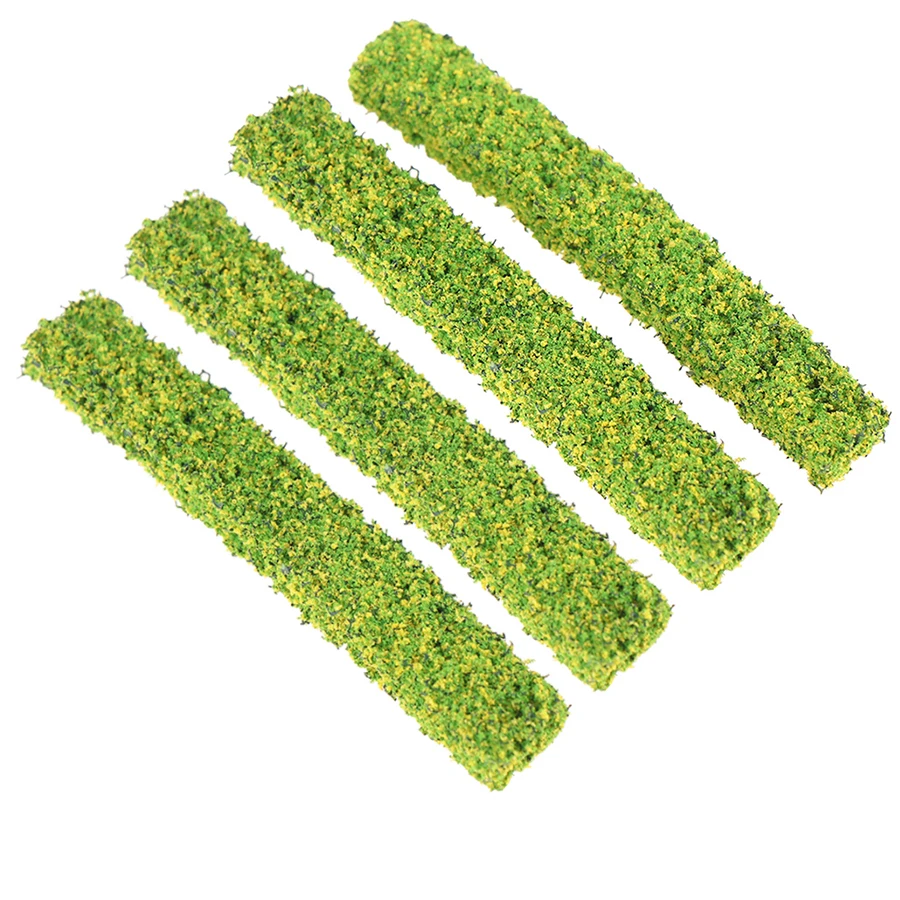 - Set includes four miniature shrub strips, each measuring 10cm x 1.5cm x 1cm, made from static grass and high-quality plastic for durability and realism.