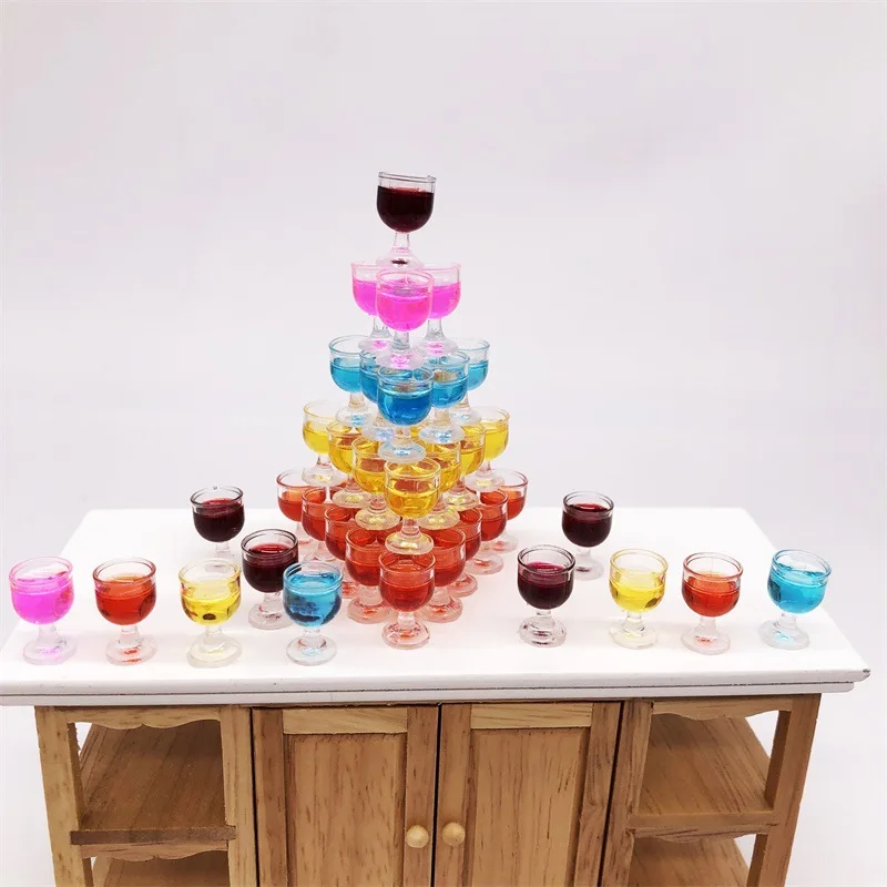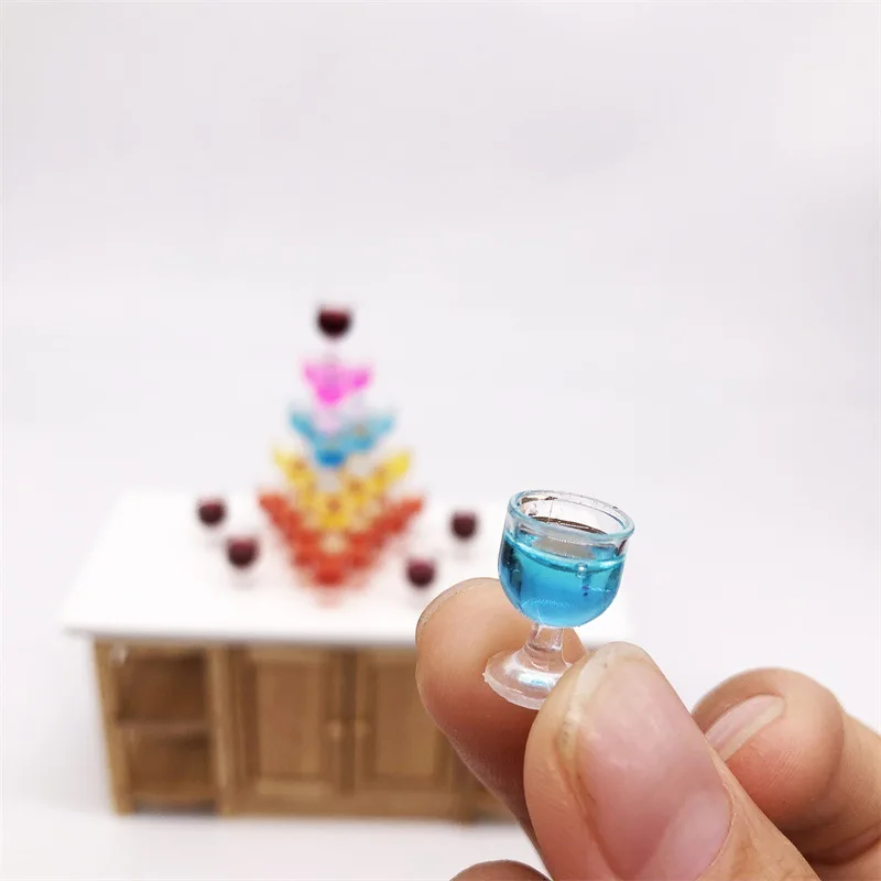 - Includes five colorful miniature wine glasses, each measuring 0.8 cm in diameter and 1 cm in height, crafted from high-quality PVC resin for durability and realism.