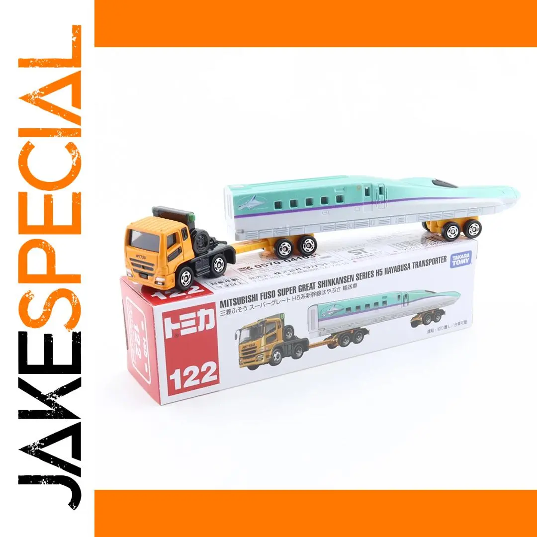 Experience the thrill of owning a meticulously crafted Mitsubishi Fuso Super Great H5 Type Shinkansen Carrier with this vibrant diecast alloy model. Measuring approximately 156mm wide, 41mm high, and 39mm deep at a 1:64 scale, this striking collectible brings to life the dynamic colors and precise details of the real vehicle. The bright orange cab contrasts beautifully with the light teal trailer, accented by purple and green details, including a playful dolphin graphic. Crafted with high-quality metal, the model features crisp molded details like a detailed grille, headlights, and side mirrors, adding to its realism. This durable toy is perfect for adult collectors who appreciate fine craftsmanship and vibrant design.
