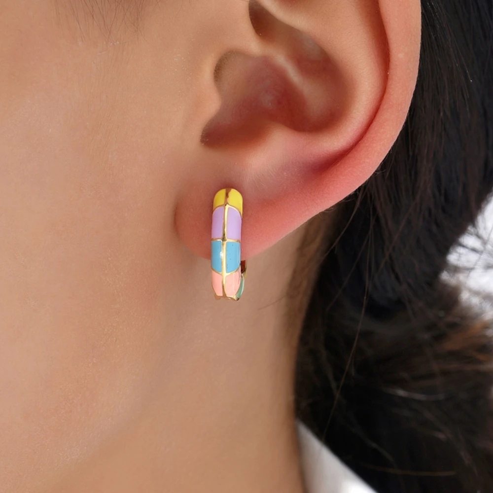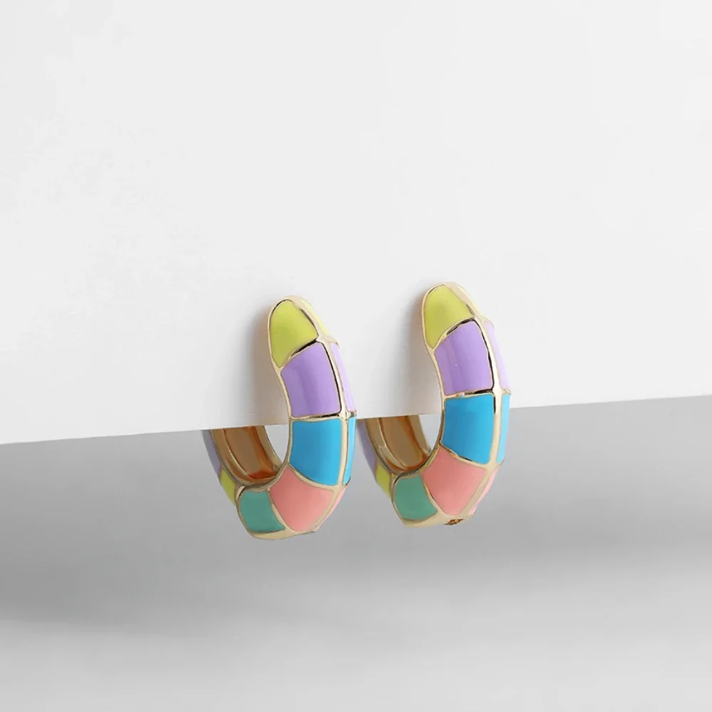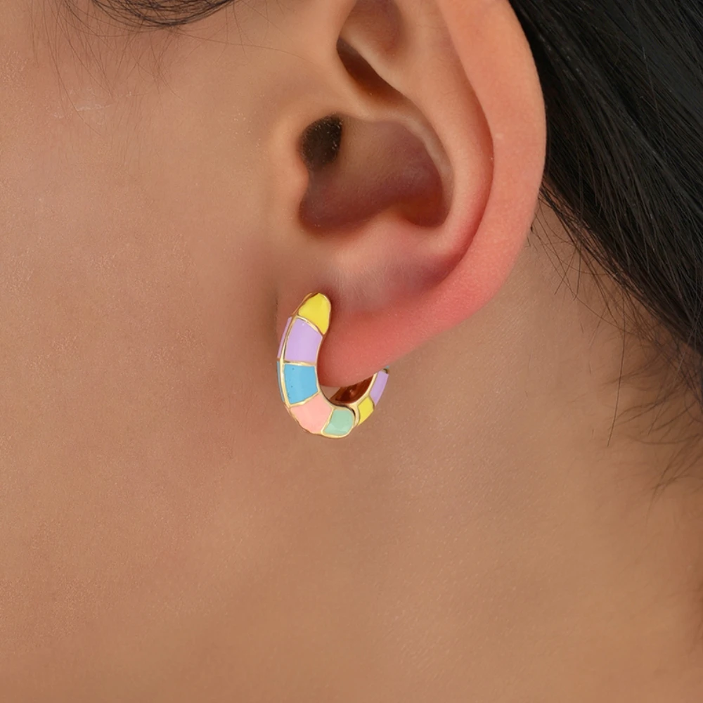 Vibrant Multicolor Drip Enamel Hoop Earrings