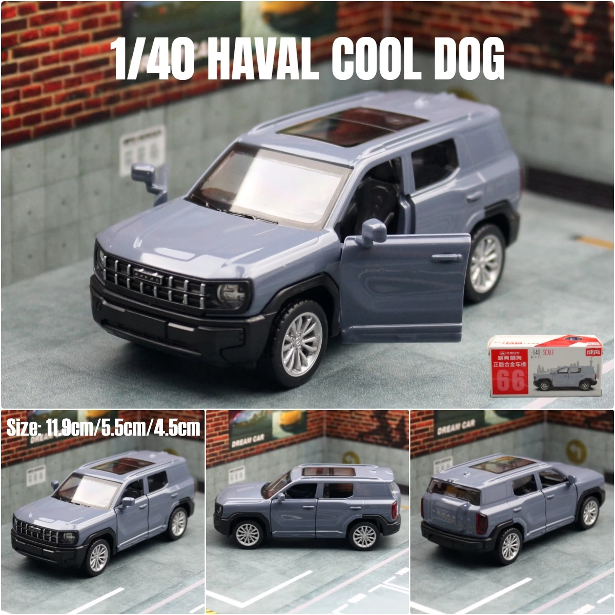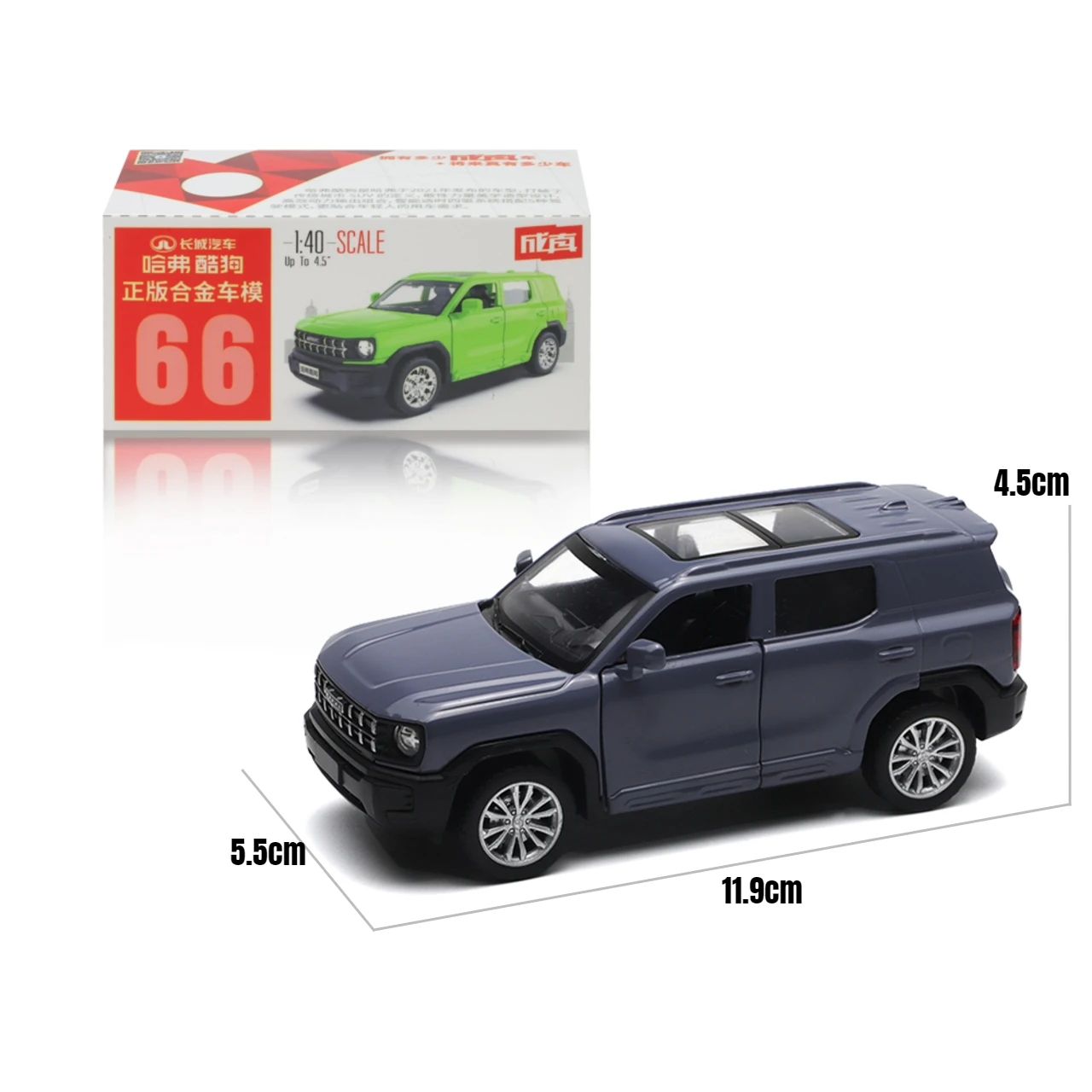 - Scale of 1:40 with highly detailed exterior accurately replicates the actual Haval Cool Dog hybrid SUV’s proportions and style elements.