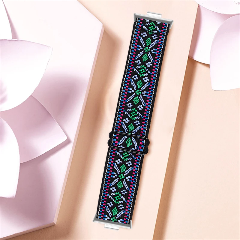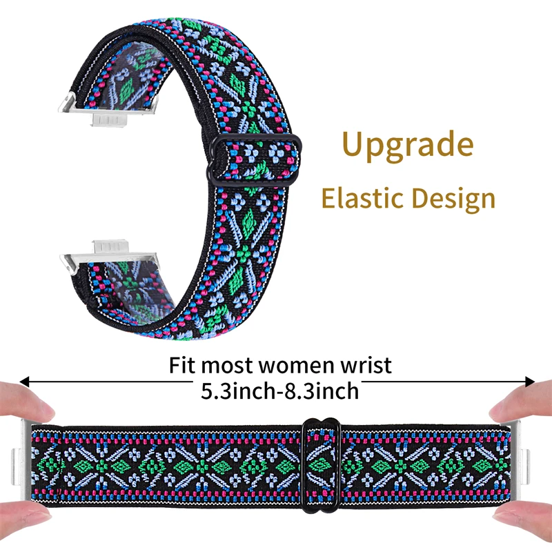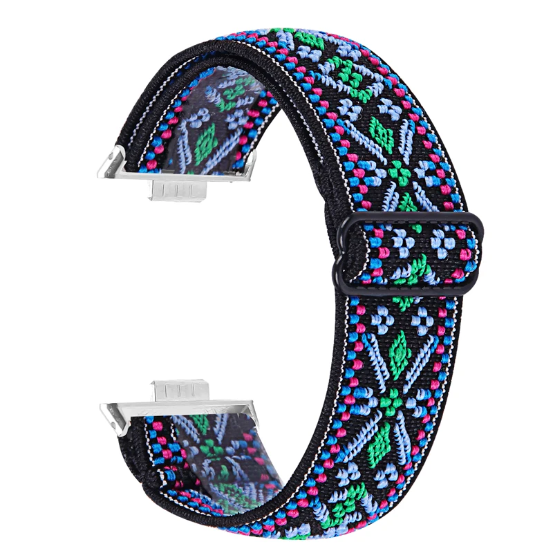 Enhance your Huawei Watch Fit series with this versatile nylon loop strap, compatible with models Fit 3, Fit 4, and Fit 4 Pro, featuring a 20mm band width. Crafted from durable, lightweight nylon, this unisex strap offers a comfortable fit and vibrant, intricate embroidery in numerous color options, including black, blue, green, pink, purple, and white. The stylish bohemian-inspired design complements casual and trendy looks, while the secure band clasp ensures a reliable fit. Brand new with tags, this strap is an easy way to customize your smartwatch while enjoying a safe, chemical-free material. Perfect for everyday wear and expressing your unique style.