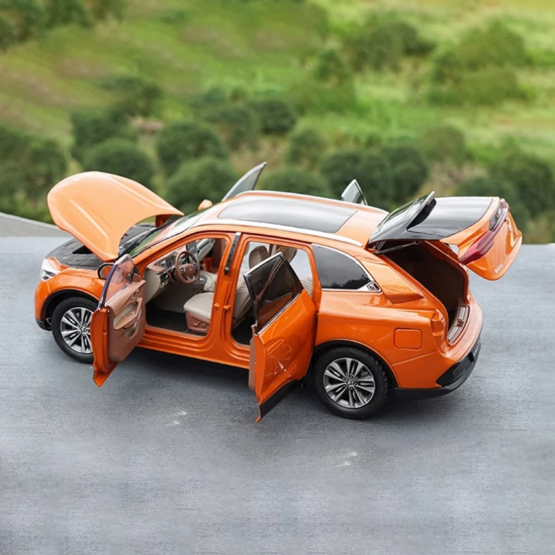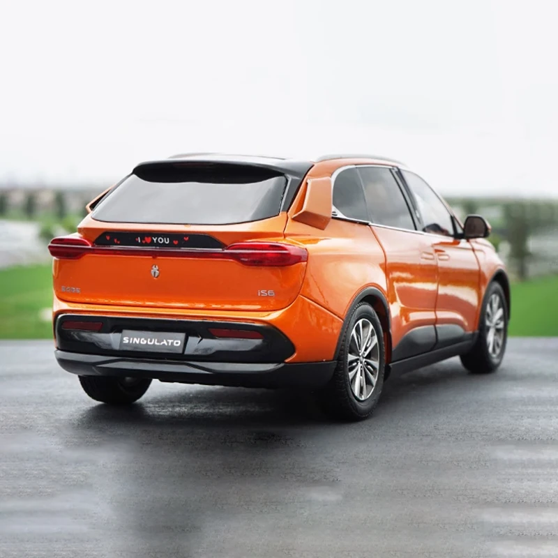 Imagine owning this stunning 1:18 scale diecast model of the Qidian IS6 SINGULATO alloy SUV. Its vivid orange color with a glossy finish instantly captures attention, showcasing sleek, modern lines and subtle curves that highlight its sporty yet sophisticated design. The detailed front grille, featuring a black section with the “SINGULATO” branding, combined with angular headlamps and intricate internal detailing, bring the model to life. The multi-spoke alloy wheels and realistic tread pattern add a touch of authenticity. With open doors, hood, and rear hatch revealing detailed interiors, this static collectible exudes craftsmanship and realism, making it a perfect display piece for any enthusiast or collector seeking a vibrant and highly detailed SUV replica.