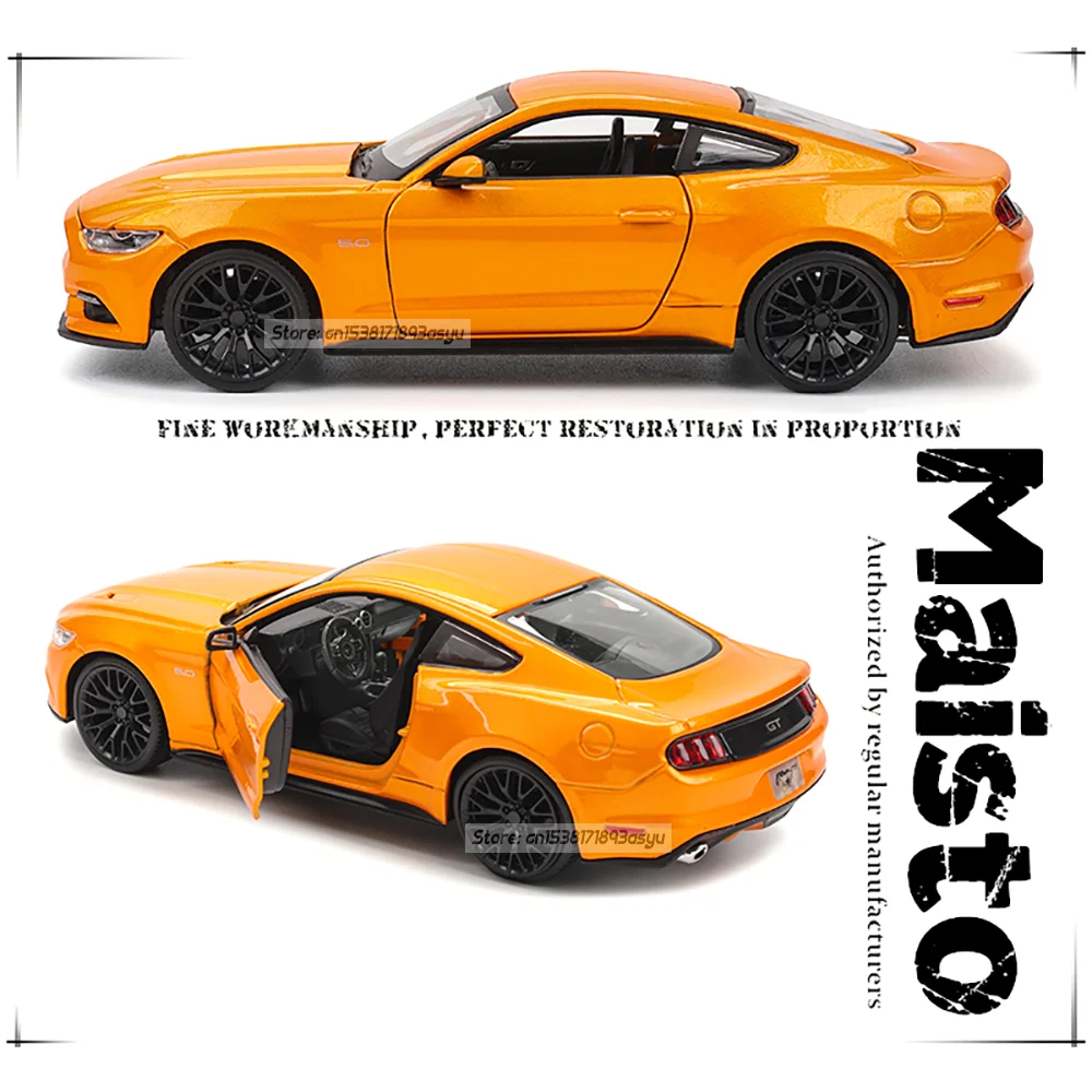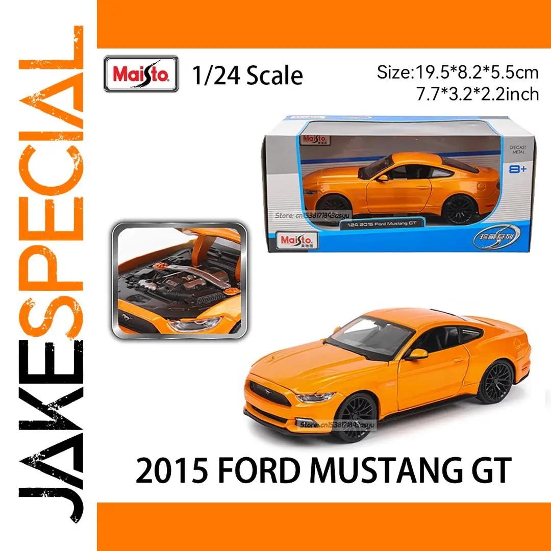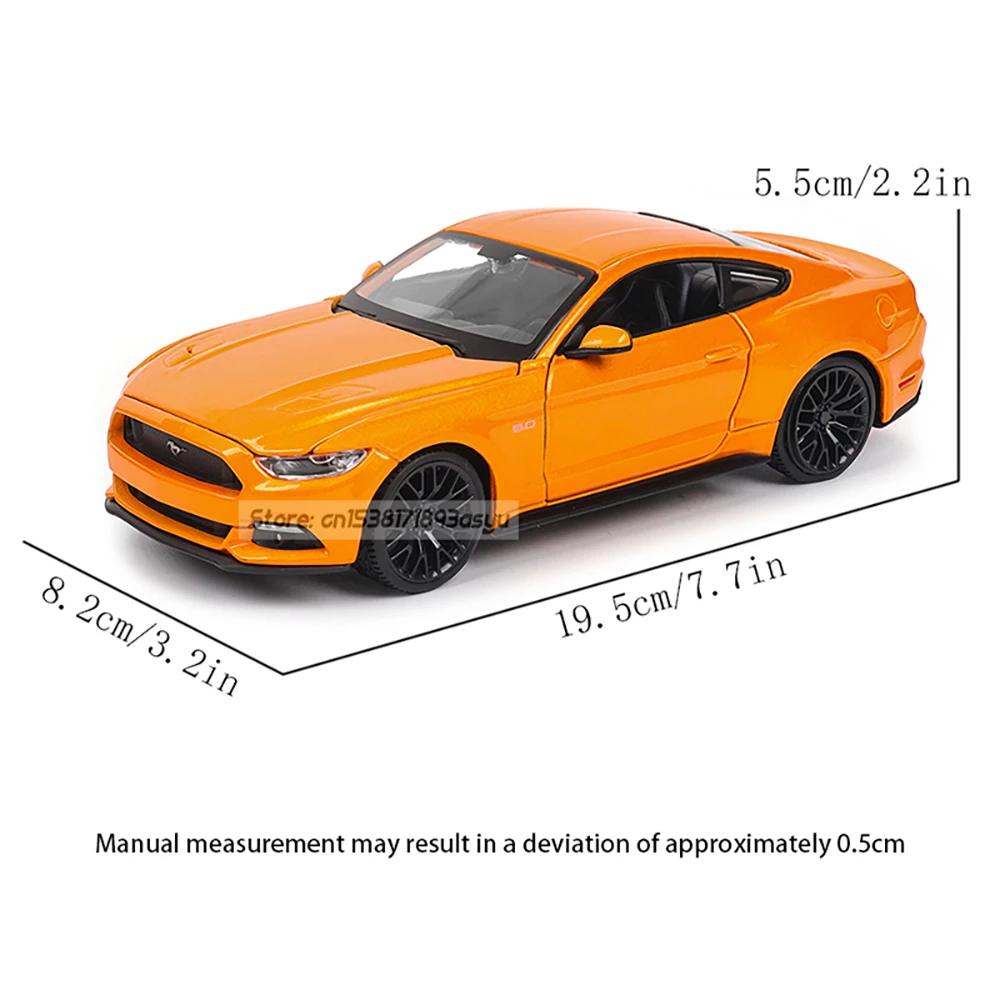 Experience the thrill of owning this meticulously crafted diecast model of the 2015 Ford Mustang GT. With its vibrant, glossy orange finish, it truly captures the sleek, aerodynamic shape of the real sports car. The finely detailed contours highlight the aggressive front grille, sharp headlights, and sporty air intakes, offering a realistic appearance. Its scaled size of 1:24 makes it perfect for display, measuring approximately 18 cm long, 9.6 cm wide, and 4.6 cm high. Made from alloy, the model boasts durability and a high-quality metallic finish. Whether you're an avid collector or a passionate enthusiast, this collectible will elevate your display with its precise craftsmanship and bold aesthetic.