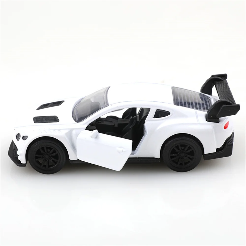 Immerse yourself in the thrill of sports car design with this die-cast alloy model, crafted from durable metal and available in three striking colors: green, orange, and white. Its sleek, aerodynamic silhouette features functional door simulation that opens upwards, showcasing meticulous detailing including a textured diamond-pattern grille, round black headlights, black side mirrors, and a prominent black rear spoiler. The model rides on multi-spoke black wheels with rubber-like tires, emphasizing its sporty, high-performance aesthetic. Perfect as an exquisite decorative piece or collectible, this detailed miniature captures the essence of speed and style, elevating any display or collection with its realistic and dynamic design.