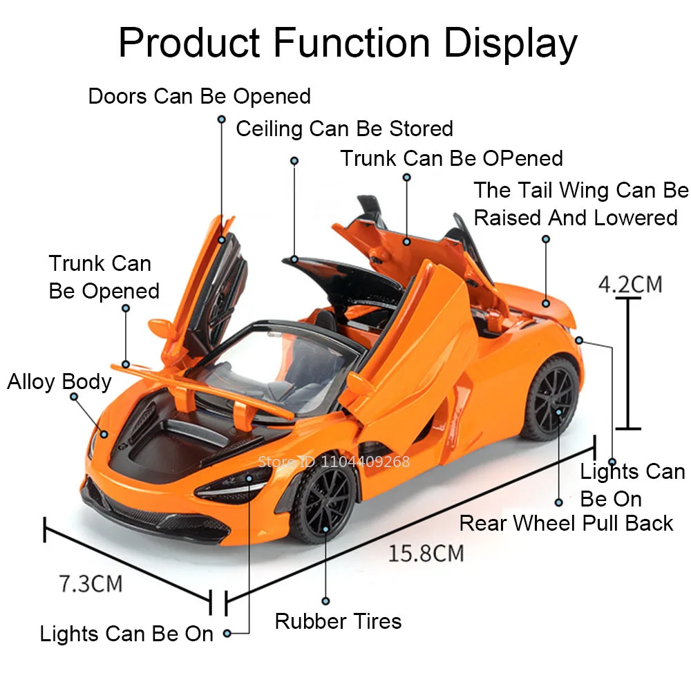 Imagine showcasing this striking miniature supercar and impressing fellow enthusiasts. Its realistic details, functional doors, and vibrant finish bring the essence of the McLaren 720S Senna right into your space. This model is perfect for display or gifting—designed for adult collectors who appreciate high-quality craftsmanship. Its sleek design, dynamic features, and durable build ensure it remains a treasured piece for years to come. Take pride in owning a meticulously crafted miniature that embodies speed, luxury, and innovation. Elevate your collection today with this exceptional model of the iconic McLaren 720S Senna.