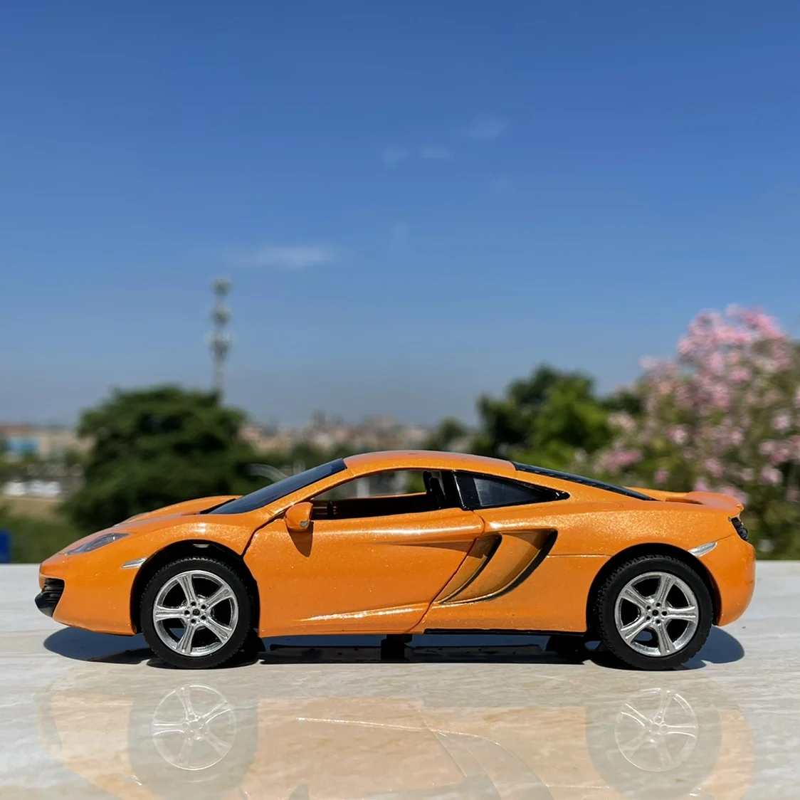 This vibrant orange this McLaren MP4-12C diecast model