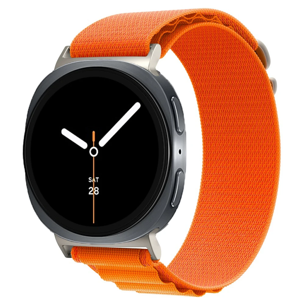 Experience a perfect blend of sportiness and durability with this vibrant orange nylon strap designed specifically for Samsung Galaxy Watch 8 and Galaxy Watch 8 Classic models. Crafted from high-quality nylon, this strap offers a textured, woven feel that ensures comfort and longevity. Its bold orange color creates a striking contrast against your watch’s sleek metallic face, making it ideal for active lifestyles and everyday use. The adjustable nylon loop clasp guarantees a secure fit, while the stitched lines reinforce its rugged aesthetic. Whether you’re working out or adding a pop of color to your daily outfit, this strap will elevate your smartwatch’s style while offering reliable comfort and durability. Easy to swap, it’s the perfect accessory for enhancing your Galaxy Watch 8 experience.