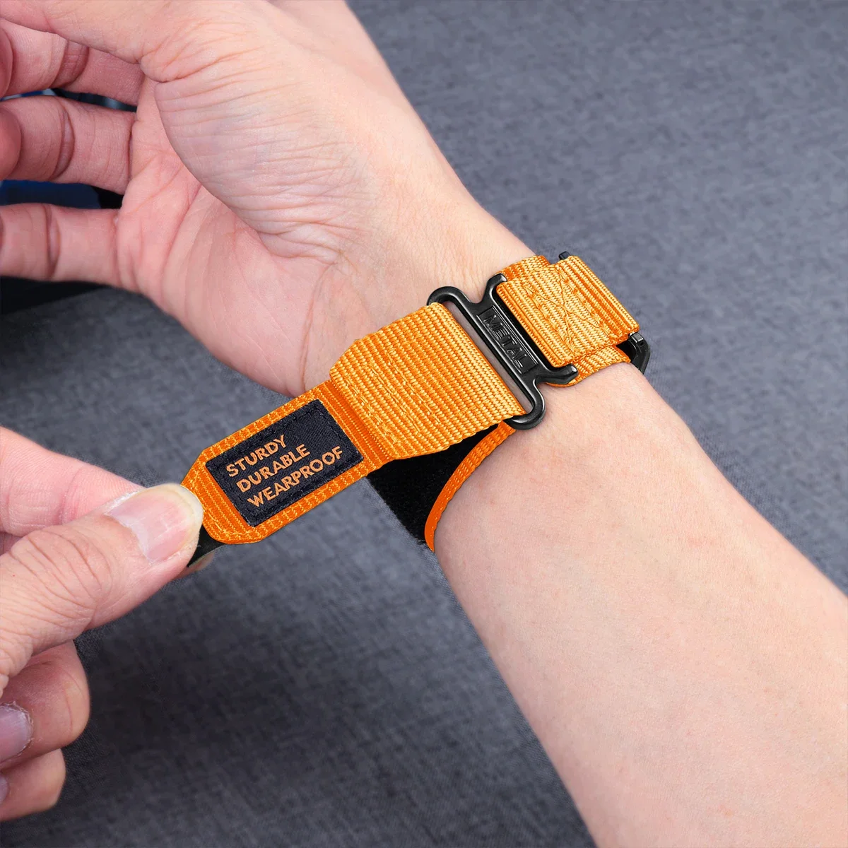 Experience a durable and comfortable fit with this tactical nylon replacement wristband designed specifically for the Whoop 4.0. Crafted from breathable nylon material, it offers adjustable sizing for a perfect fit and features a vibrant orange color with a finely woven texture that combines style and practicality. The sleek design includes a black plastic buckle for secure fastening, contrasting sharply with the bright hue. Its Neatly finished edges and dual-layer construction ensure longevity and a sporty aesthetic suitable for active lifestyles. Compatible exclusively with the Whoop 4.0, this wristband provides a seamless look and reliable performance for both women and men.