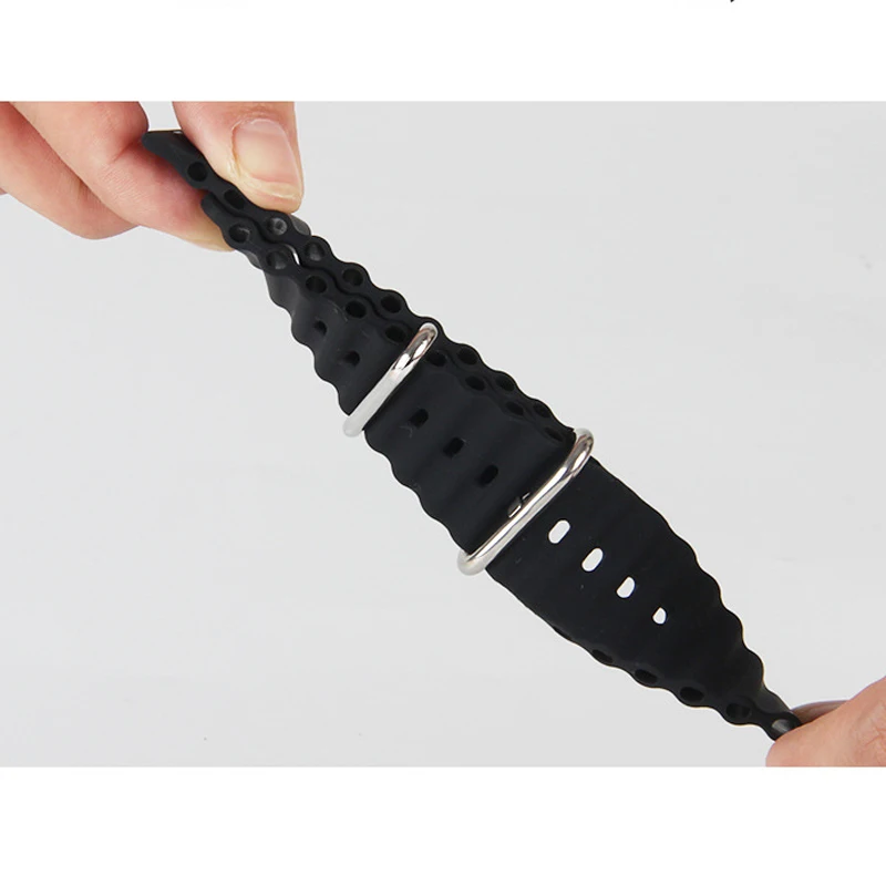 - The strap features a sleek, matte finish with evenly spaced, rounded perforations that improve breathability and allow for easy adjustment to fit any wrist size precisely.