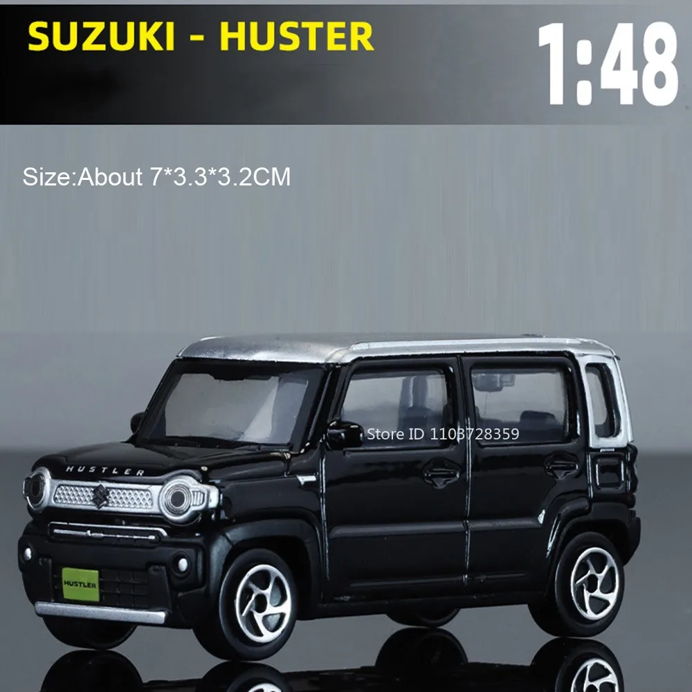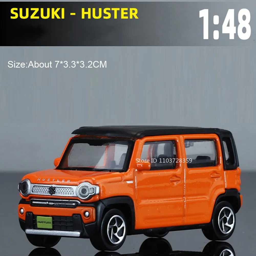 Experience the vibrant, high-detailed design of this 1:48 scale Suzuki Hustler miniature car model, featuring a sturdy metal diecast alloy body, plastic chassis, and rubber tires for durability and realism. Measuring approximately 7 cm long, 3.3 cm wide, and 3.2 cm high, it boasts striking color options—orange, black, pink, and blue—with a boxy, contemporary silhouette, rounded headlights, silver grille, and textured black roof with parallel grooves. This collectible model includes shock absorption and slide-forward functions, making it perfect for enthusiasts and as an eye-catching gift. Crafted without electrical components, it embodies strength and precision for adult collectors.