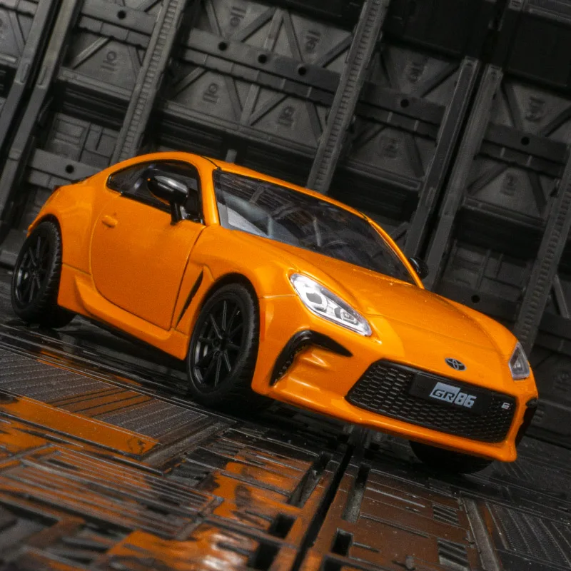 This vibrant orange Toyota GR86 diecast model